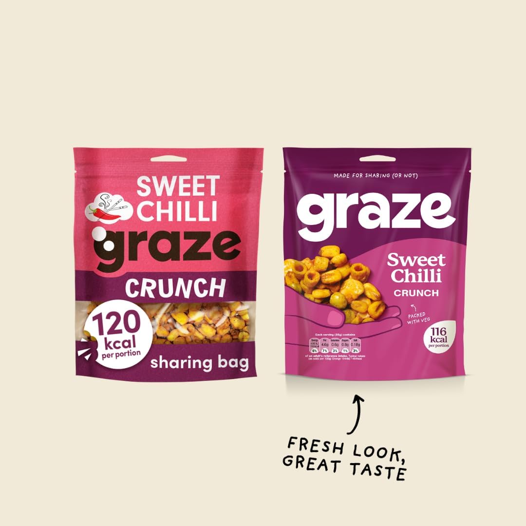 Graze Sweet Chilli Crunch - Vegan Savoury Healthy Snacks Sharing Bags, High In Fibre, Natural Flavours - Packaging May Vary - (6 X 100G Sharing Bags)