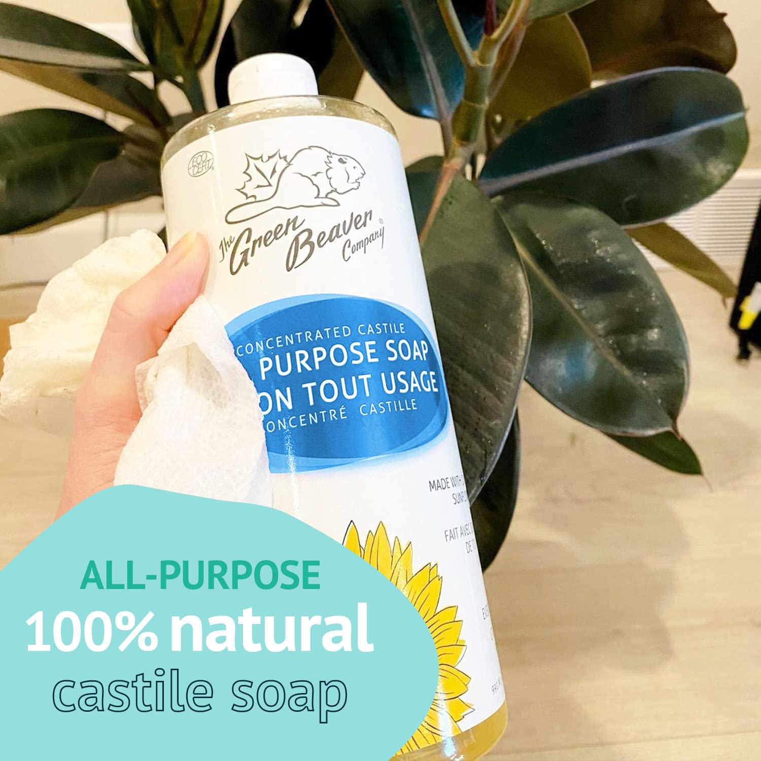 Green Beaver Natural All Purpose Castile Soap. A versatile and effective cleanser for your entire household. This all-purpose soap can be used as a hand soap, body wash, dish soap, and as a floor and surface cleaner. Formulated with natural ingredients that are good for your skin. Free from harmful elements like GMOs, parabens, artificial fragrances, and phthalate. Non-irritating and natural, it replaces most chemical all-purpose cleaners. The naturally scented formula is made with organic coconut oil, sunflower oil, and eucalyptus globulus oil to nourish the skin. An unscented version is also available,All Purpose Soap - Green Beaver’s gentle and natural All Purpose Soap can be used to clean everything, from your house to your body; Enriched with natural oils that hydrates your skin while leaving it soft and clean,Hand & Body Wash - Use a small quantity and mix with water to wash hands or use as a body wash; Made with organic coconut oil, sunflower oil, and eucalyptus globulus oil to nourish the skin,Versatile Household Cleaner - Diluted with water, it can be used to wash dishes, floors, and all other household surfaces; An ideal formula that keeps your house clean and free of dangerous and toxic cleaning products,Natural Ingredients - Formulated with all natural ingredients that are good for your skin; Free from harmful elements like GMOs, parabens, artificial fragrances, and phthalate; Non-irritating and natural, it replaces most chemical all-purpose cleaners,About Us - Green Beaver’s natural and non-toxic products are made to care for all; Our proudly Canadian company aims to provide families with healthy, organic, 100% natural, personal care products that are good for them and for the environment