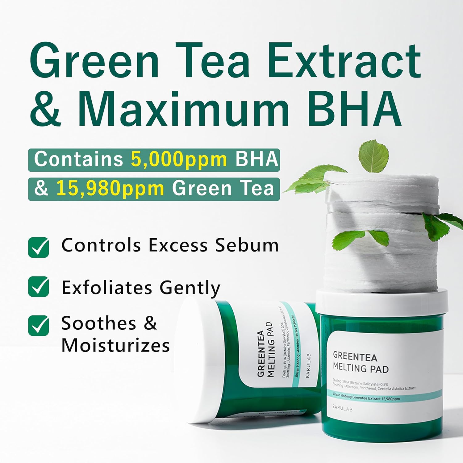 Green Tea Bha Melting Toner Pads W/Centella Asiatica - 150 Large Pads Soothing Hydrating Moisturizing 13 Oz | All Skin Types | Anti-Blemish Daily Care Gentle Mild Peeling Exfoliating Korean Skincare