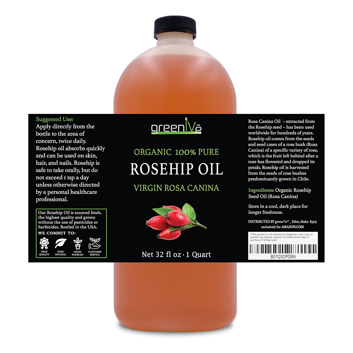 About this item QUALITY: GreenIVe 100% Pure Cold Pressed Rosehip Oil is freshly bottled in the USA. 0 Additives, 0 Fillers, 0 Artificial Ingredients, 0 chemicals. 100% pure Rosehip Oil. Nothing added, nothing taken away USES: With several bottles options GreenIVe is please to have an option for all of your needs. From Tinctures to Bulk sizes SKIN: Rosehip Oil is a top Beauty Oil. Assists in skin health such as healing scars, reducing wrinkles, eliminating spots, and moisturizing skin. HAIR: Bring back a healthy shine to your hair with GreenIVe Rosehip Oil. Roship Oil is excellent for hair health GUARANTEED: Backed by GreenIVe's 30 day guarantee! If you are not satisfied let us know! We'll make it right! See more product details,QUALITY: GreenIVe 100% Pure Cold Pressed Rosehip Oil is freshly bottled in the USA. 0 Additives, 0 Fillers, 0 Artificial Ingredients, 0 chemicals. 100% pure Rosehip Oil. Nothing added, nothing taken away,USES: With several bottles options GreenIVe is please to have an option for all of your needs. From Tinctures to Bulk sizes,SKIN: Rosehip Oil is a top Beauty Oil. Assists in skin health such as healing scars, reducing wrinkles, eliminating spots, and moisturizing skin,HAIR: Bring back a healthy shine to your hair with GreenIVe Rosehip Oil. Roship Oil is excellent for hair health,GUARANTEED: Backed by GreenIVe's 30 day guarantee! If you are not satisfied let us know! We'll make it right!