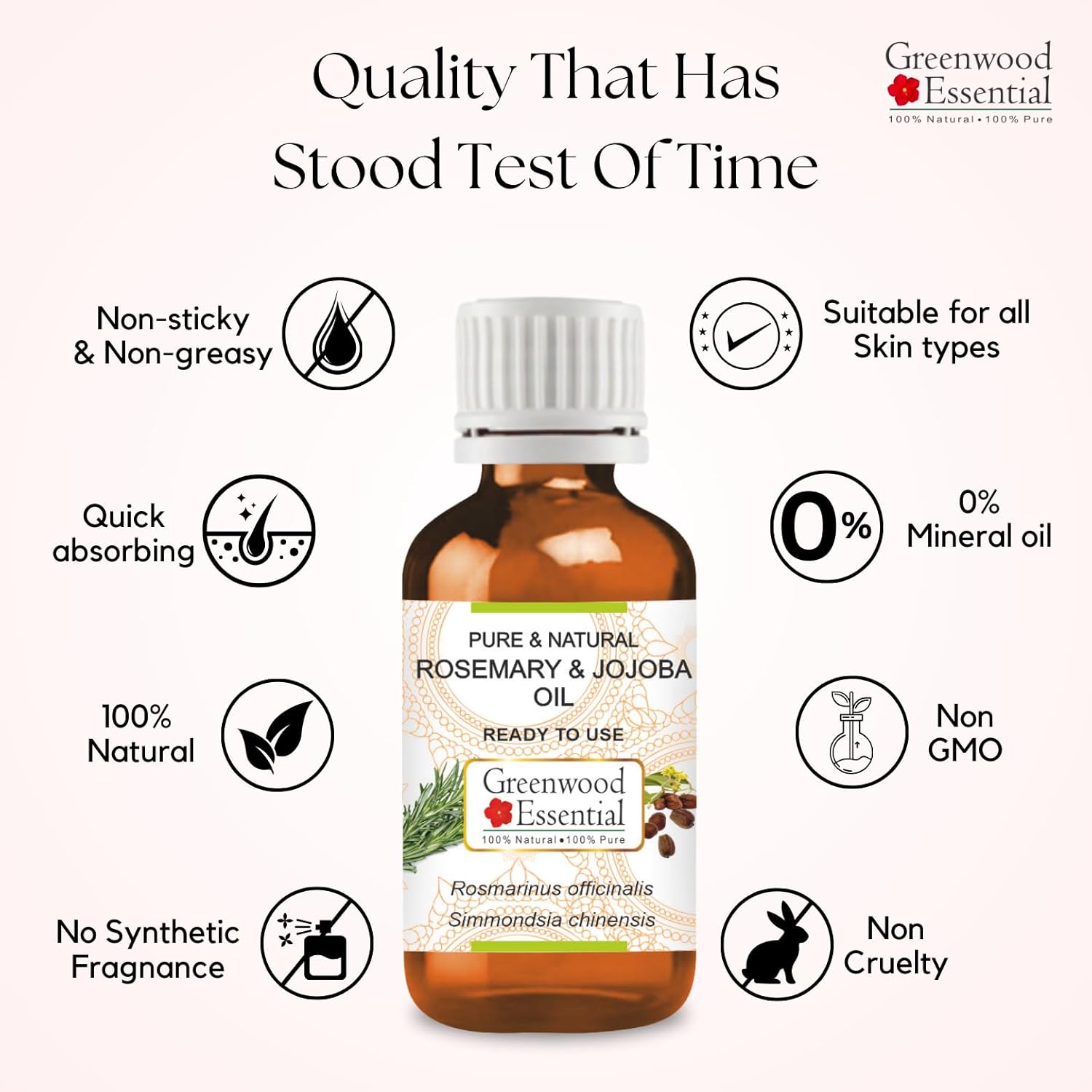 Product description Greenwood Essential Rosemary and Jojoba Oil, Liquid Gold for Hair and Scalp- Pure and Natural Greenwood Essential Safety Warning This product does not have child safety cap. Keep away from children,Quantity β 200ml (6.76 oz), 2% Rosemary, 98% Jojoba Oil, High Quality Pet Bottle designed to preserve potency. Daily Hair care Regimen, Lightweight, Non-greasy, Non-sticky, For all seasons,The Tohono O'Odham Indians describe Jojoba oil as "Liquid Gold". The powerful benefits of pure rosemary oil, makes it an amazing blend for your hair. Jojoba all is moleculary similar to sebum, our skin's natural oil secretion. This helps prevent excessive oil secretion from our scalp, while also providing balanced moisturising to both dry and oily scalp types,Works for All Hair Types: Perfect for dry, oily, curly, straight, and color-treated hair, offering natural care for every hair type,Usage: Sponge your hair with water to make the oil application on the scalp easy. Take 2-3 ml of Rosemary Jojoba oil and apply gently on the scalp. Leave it overnight. Use 3 times a week for optimal results,Purchase with full assurance: We have been offering 'No Questions Asked reimbursement' for the last 13 years. We believe our oils will impart lasting therapeutic benefits to you