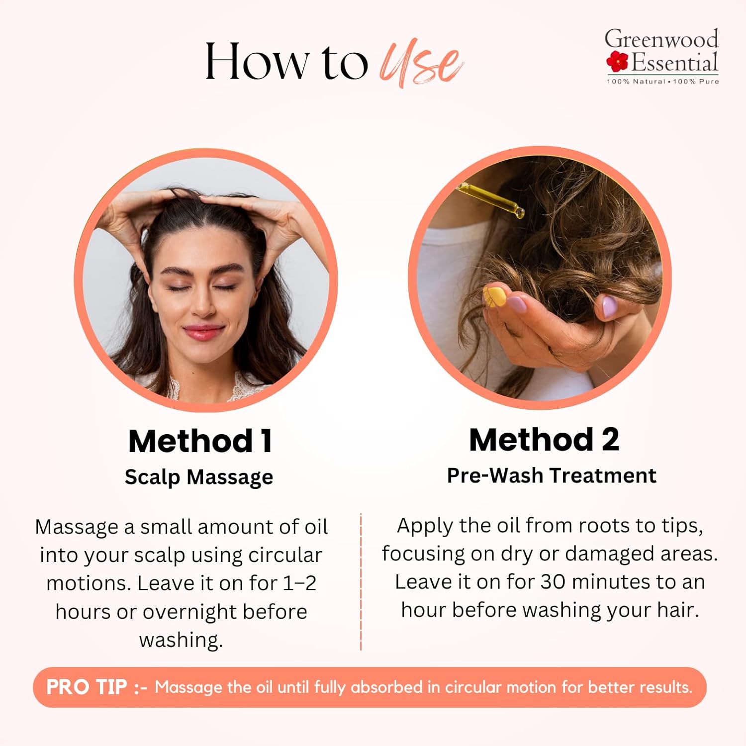 Product description Greenwood Essential Rosemary Lavender and Almond Oil for Healthy Hair and Scalp Massage- Pure and Natural Greenwood Essential Safety Warning This product does not have child safety cap. Keep away from children,Quantity β 50ml (1.69 oz), 1% Lavender, 1% Rosemary, 98% Almond, High Quality Amber Glass Bottle designed to preserve potency. Daily Hair care Regimen, Lightweight, Non-greasy, Non-sticky, For all seasons,Almond oil deeply moisturises, while our Pure Rosemary oil provides the perfect balance and care. Lavender oil has amazing aromatic benefits and provides relief. All three blend beautifully together to promotes healthy hair and scalp,Works for All Hair Types: Perfect for dry, oily, curly, straight, and color-treated hair, offering natural care for every hair type,Usage: Sponge your hair with water to make the oil application on the scalp easy. Take 2-3 ml of Rosemary Lavender & Almond oil and apply gently on the scalp. Leave it overnight. Use 3 times a week for optimal results,Purchase with full assurance: We have been offering 'No Questions Asked reimbursement' for the last 13 years. We believe our oils will impart lasting therapeutic benefits to you