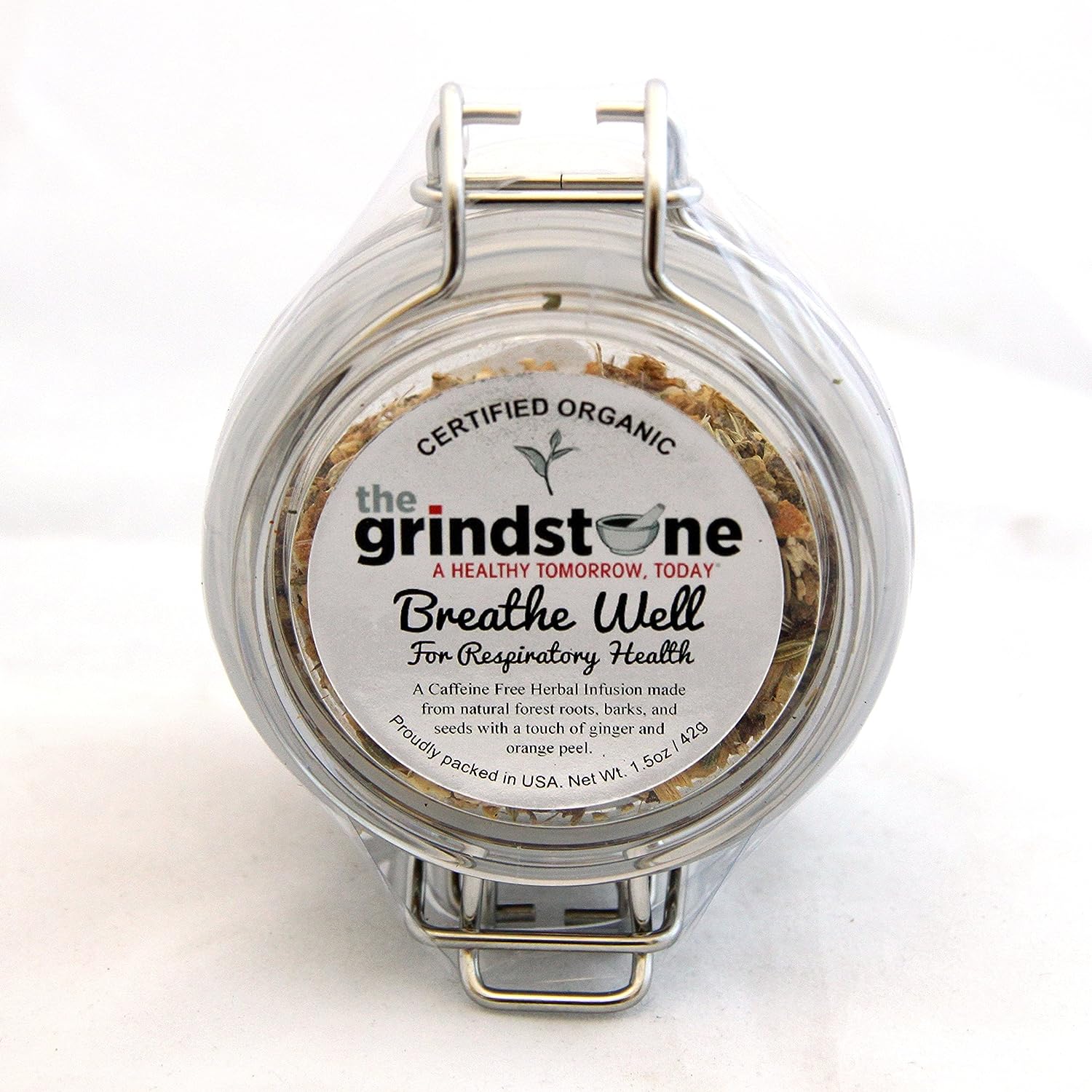 Grindstone, breathe-well tea, 100% organic wellness tea, caffeine free, herbal remedy for cough, cold and chest congestion, 1.5 oz each, loose leaf in airtight jars, pack of 2