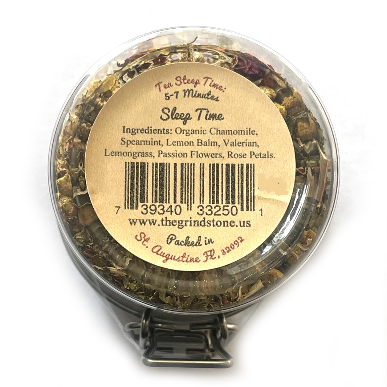 SLEEP TIME TEA | 100% ORGANIC | 100% CAFFEINE FREE Rest easy with this calming bedtime inspired blend that will send you off to dreamland so quickly, you won't even have to count sheep. In terms of popularity, chamomile is arguably the superstar of teas for sleep and relaxation in general. INGREDIENTS Organic Chamomile, Organic Spearmint, Organic Lemon Balm, Organic Valerian, Organic Lemongrass, Organic Passion Flowers, Organic Rose Petals At the grindstone, our vision is to offer highest quality, ethically produced healthy food solutions while adopting and practicing ethical & sustainable practices from the farms to the consumers. For a Healthy Tomorrow, Today!