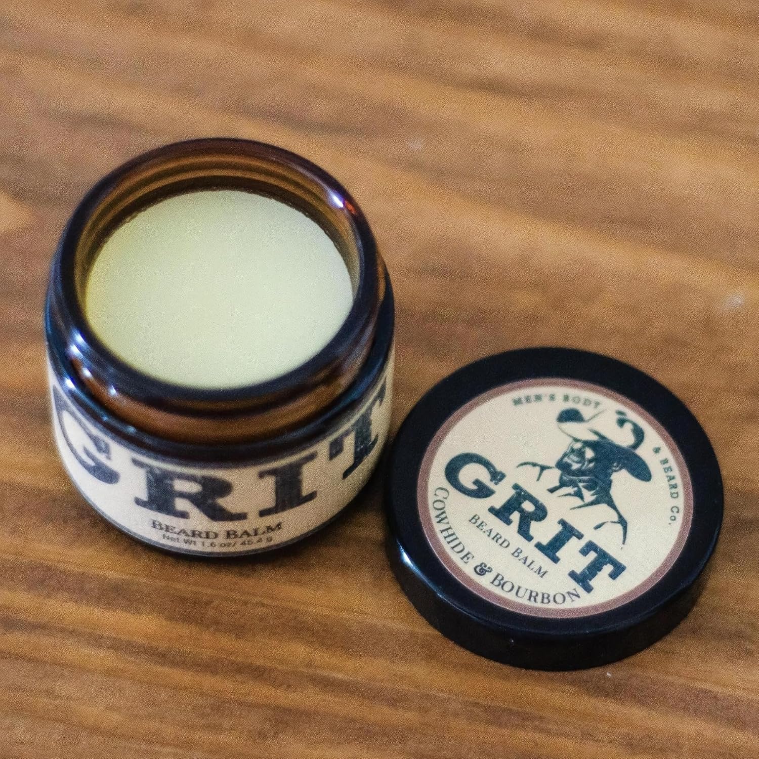 Grit Beard Balm Cowhide & Bourbon (1.6 Oz) | All Natural | Styles, Strengthens & Softens Beards & Mustaches | Moisturizes Skin | Leave In Conditioner Wax For Men