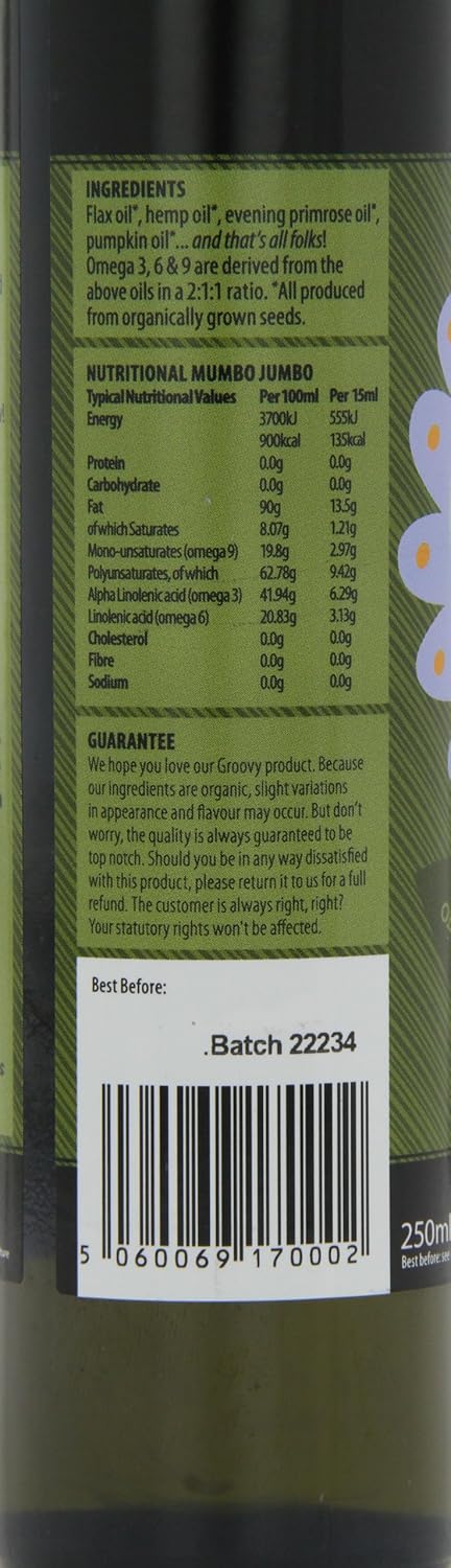 Groovy Foods Organic Cool Oil Rich In Omega 3,6,9, 250Ml (Pack Of 3)