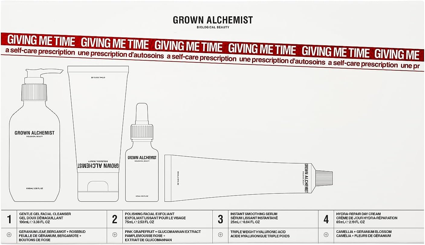 Grown Alchemist Giving Me Time, Limited Edition Gift Set & Value Pack - 100Ml Gentle Gel Facial Cleanser, 75Ml Polishing Exfoliator, 25Ml Instant Smoothing Serum & 65Ml Skin Renewal Day Cream