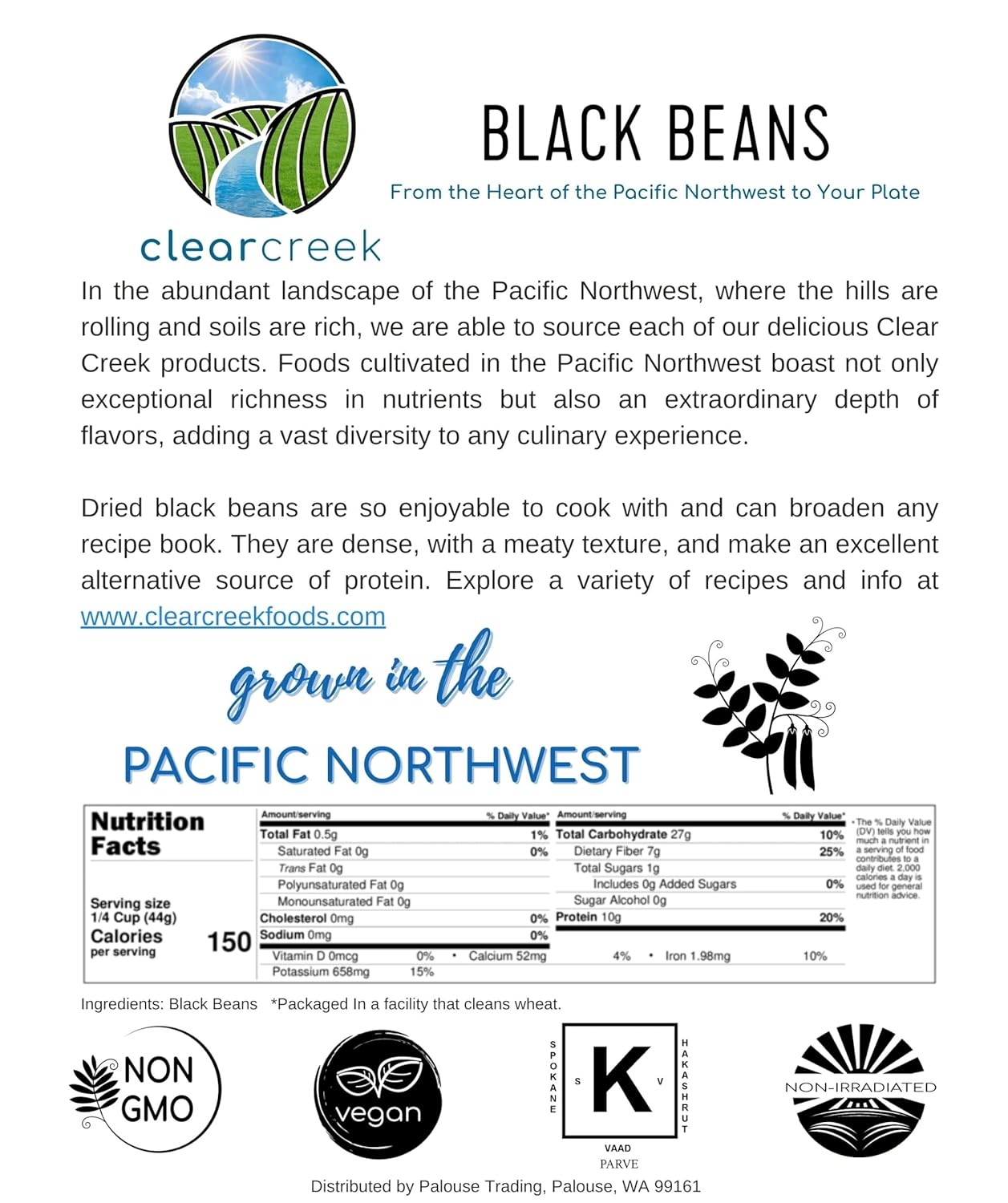 GROWN IN THE PACIFIC NORTHWEST: Our Clear Creek Black Beans are sourced from another Washington State farm as they represent the rich flavors and quality of the Pacific Northwest