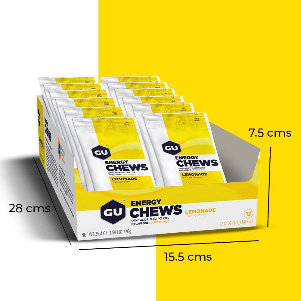 Gu Energy Chews, Lemonade Energy Gummies With Electrolytes, 12 Bags (2