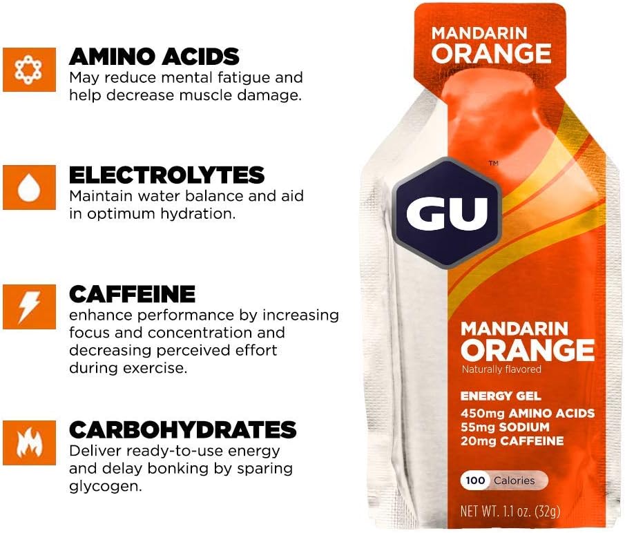 DESCRIPTION : GU Energy Original Sports Nutrition Energy Gel, 24-Count, Mandarin Orange