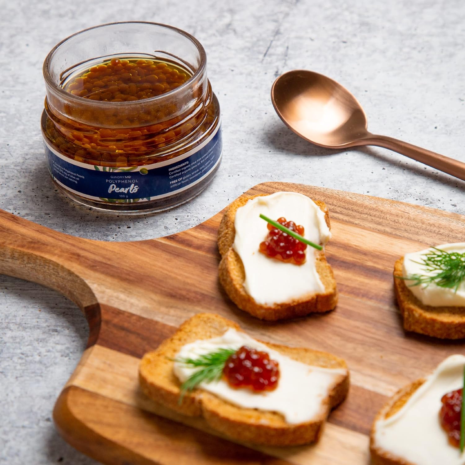 Harvested from olive trees in the high, dry desert of Morocco, one serving of these Polyphenol Pearls are supercharged with up to 275 mg of olive oil polyphenols per servingGundry MD Polyphenol Pearls are the latest breakthrough in one of my favorite āhealth toolsā ā olive oil. My motto is simple: the purpose of food is to get olive oil into your mouth⦠and these Polyphenol Pearls are an easy (and delicious) way for you to reap the rewardsHarvested from olive trees in the high, dry desert of Morocco, one serving of these Polyphenol Pearls are supercharged with up to 275 mg of olive oil polyphenols per serving. For perspective ā that means a teaspoon of my Polyphenol Pearls is like getting the benefits of 2.5 GALLONS of regular olive oilGundry MD Polyphenol Pearls are grown and cultivated from the harsh desert environment of Morocco. This arid climate helps grow some of the strongest olive trees on the planet. You see, the limited supply of resources force the trees to āsurgeā their polyphenol counts to help protect them. In fact, Polyphenol Pearls can be incredibly more powerful than conventional olive oil⦠and, in my opinion, tastier, too!Gundry MD Polyphenol Pearls are sourced, cultivated, and extracted according to industry safety and purity standards. They contain no artificial ingredients and are tested for quality at an independent, 3rd-party facility