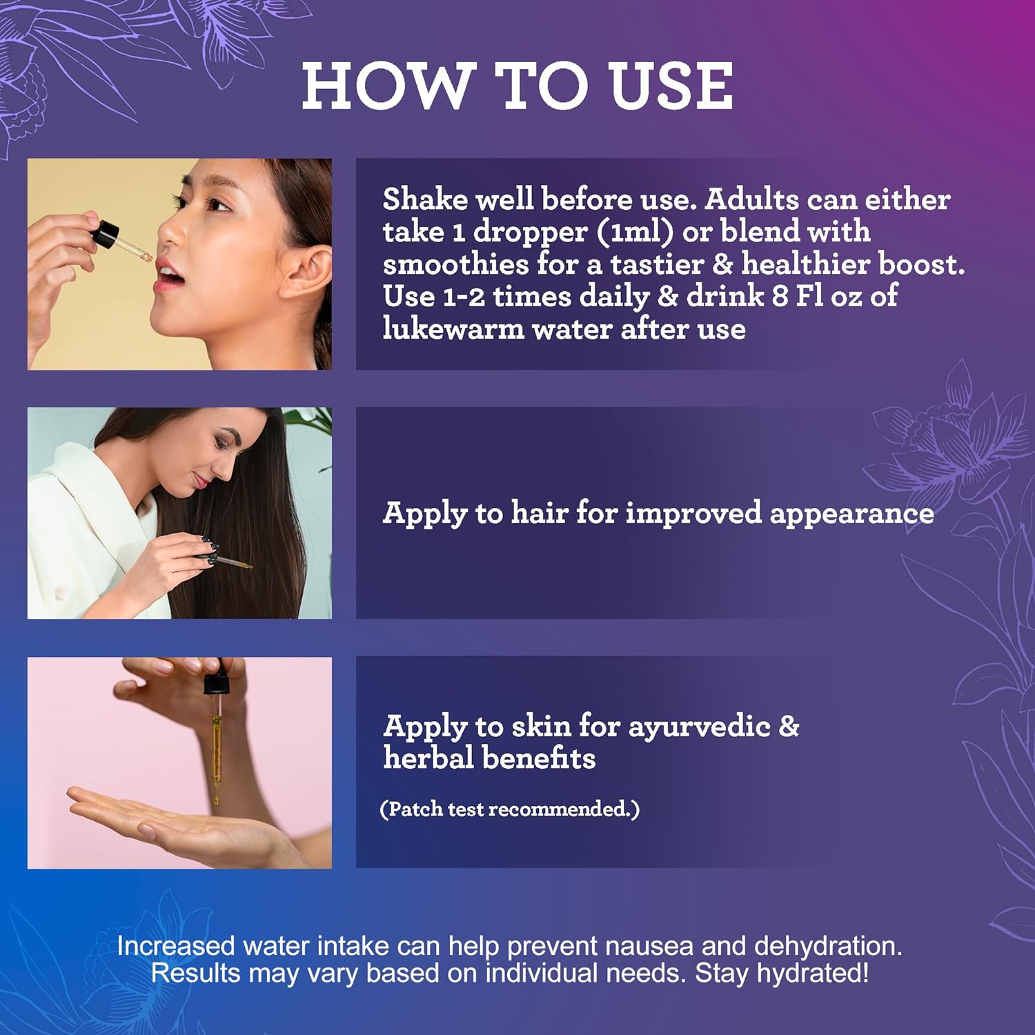 How To Use: For Adults, Take One Dropper Full (1 Ml) Once Or Twice A Day, Or Mix It With Smoothies Or Juices. Drink Up To 8 Fl Oz Of Lukewarm Water After Consumption And Stay Hydrated
