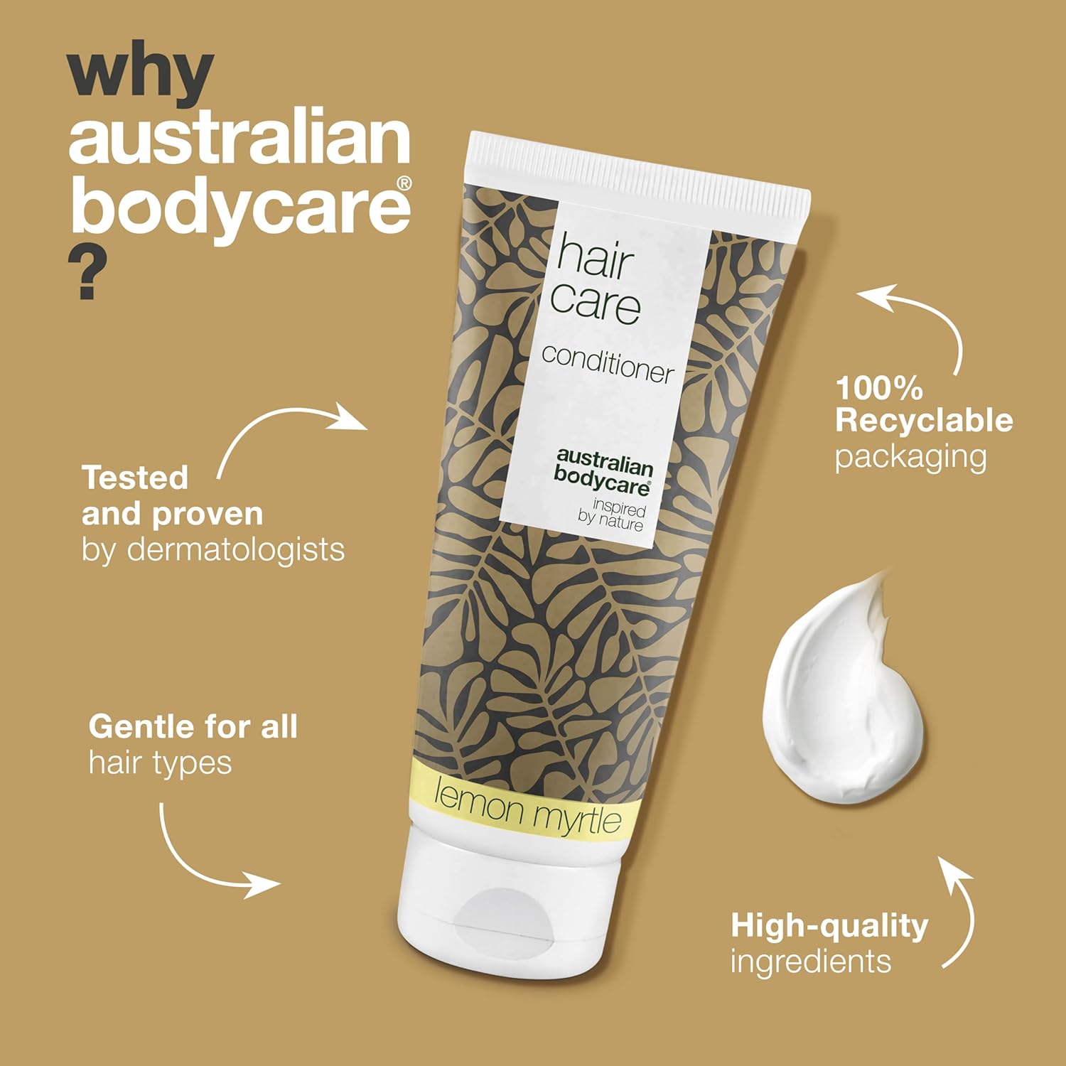 About this item ?? RESULTS: What can I expect and when Most men and women will feel the effect after the first use. Still, we strongly recommend to use Hair Care in combination with the 2 other products of our Hair Care Set. They have a clinically proven effect on dandruff and dry, itchy scalp. Although it’s important that you don't expect results overnight, it will take some time. If you haven’t seen any signs of improvement after 2 weeks, send us a mail and receive a FULL REFUND! ?? HOW TO USE: How often should I use Hair Care conditioner Use daily as required. To get the best results, we recommend that you use Hair Care after shampooing with our Hair Clean shampoo. After applying the conditioner, wait for 2-3 minutes before you wash it out. Conditioner for curly, coloured, grey and afro hair. Suitable for all hair types. ?? PRODUCT INFO: Contains 100% natural australian Tea Tree Oil of pharmaceutical quality. The unique composition of natural ingredients keep the scalp moisturized and soothe the skin, to keep your hair and scalp from drying out after shampooing. All products from Australian Bodycare are dermatologically tested and 100% vegan. ?? SUITABILITY: The product has been approved by our cosmetic science team. We have been developing problem-solving skin care products of superior quality for more than 30 years. We develop all our products using top?shelf ingredients. With regards to quality, we do not compromise. › See more product details,?? RESULTS: What can I expect and when Most men and women will feel the effect after the first use. Still, we strongly recommend to use Hair Care in combination with the 2 other products of our Hair Care Set. They have a clinically proven effect on dandruff and dry, itchy scalp. Although it’s important that you don't expect results overnight, it will take some time. If you haven’t seen any signs of improvement after 2 weeks, send us a mail and receive a FULL REFUND!,?? HOW TO USE: How often should I use Hair Care conditioner Use daily as required. To get the best results, we recommend that you use Hair Care after shampooing with our Hair Clean shampoo. After applying the conditioner, wait for 2-3 minutes before you wash it out. Conditioner for curly, coloured, grey and afro hair. Suitable for all hair types,?? PRODUCT INFO: Contains 100% natural australian Tea Tree Oil of pharmaceutical quality. The unique composition of natural ingredients keep the scalp moisturized and soothe the skin, to keep your hair and scalp from drying out after shampooing. All products from Australian Bodycare are dermatologically tested and 100% vegan,?? SUITABILITY: The product has been approved by our cosmetic science team. We have been developing problem-solving skin care products of superior quality for more than 30 years. We develop all our products using top?shelf ingredients. With regards to quality, we do not compromise