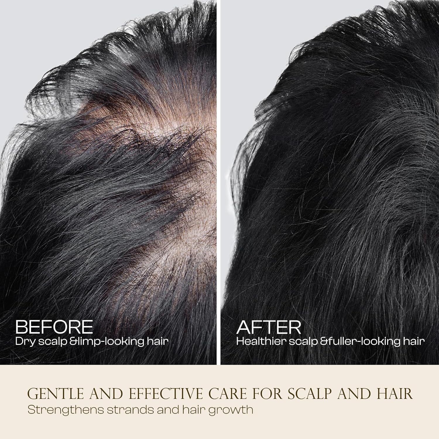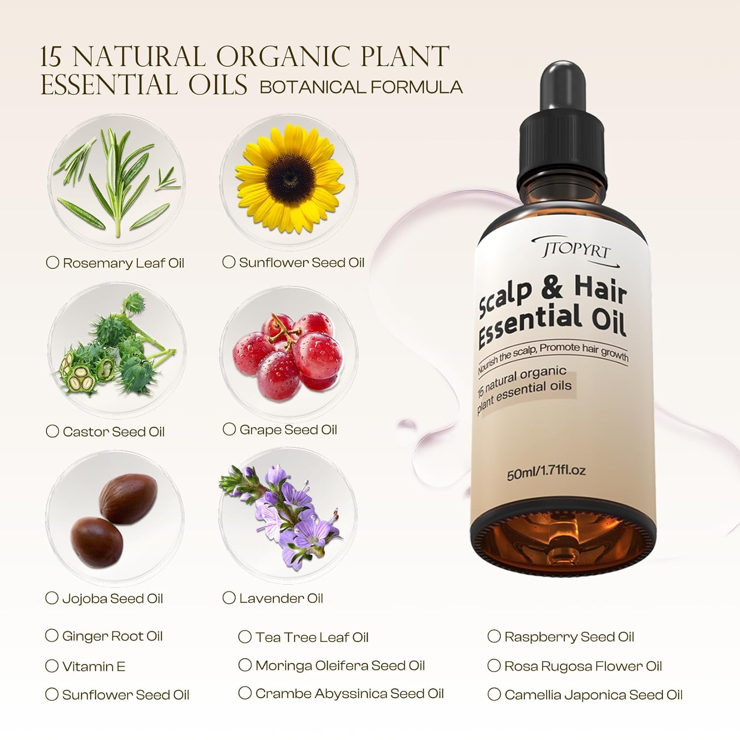 Multi-Oil Nourishment with Jojoba & Lavender: Jojoba seed oil and lavender oil deeply hydrate the scalp while sunflower and grape seed oils deliver antioxidants, creating a balanced environment for stronger roots and reduced thinning