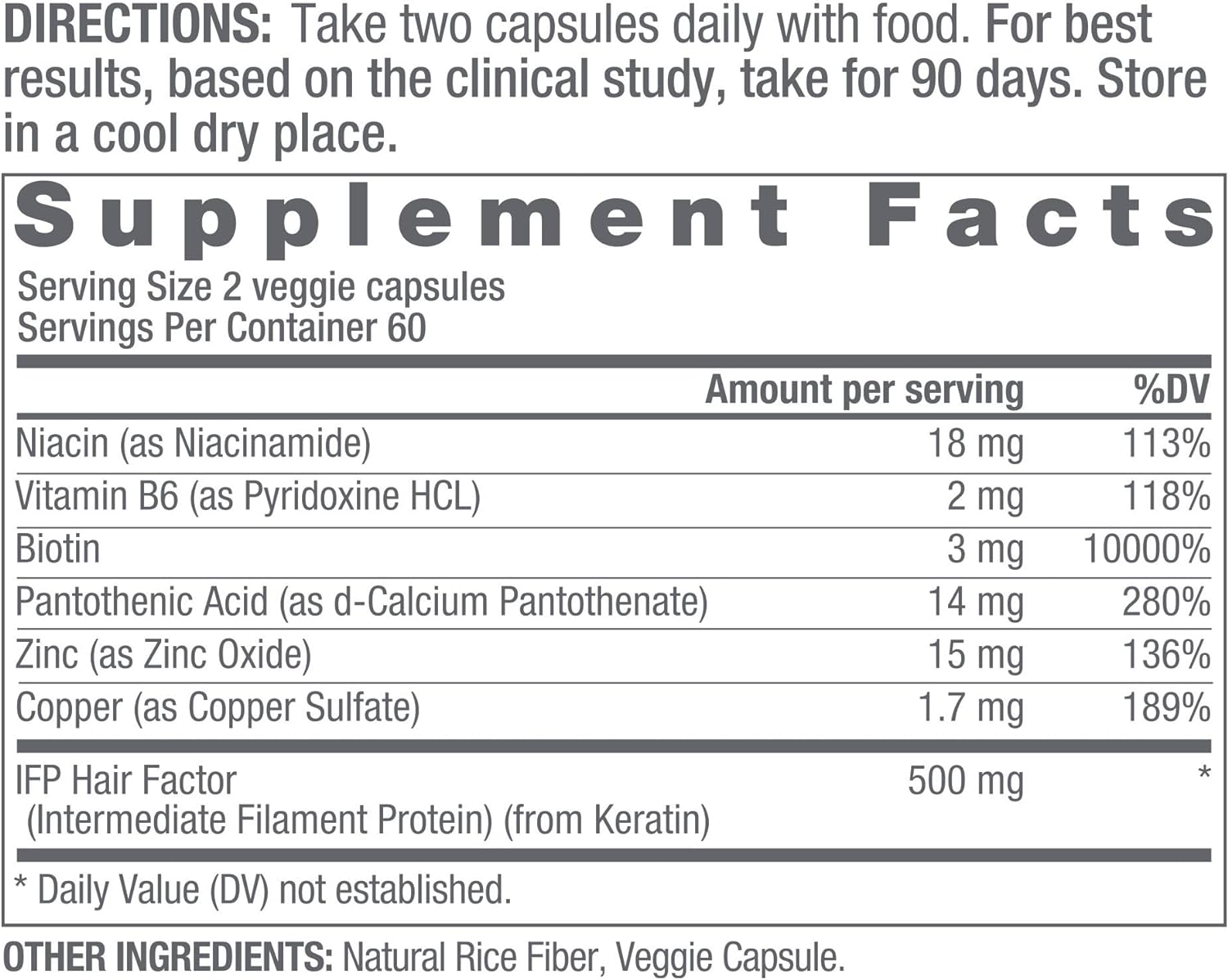 Grow Your Dream Hair: Hair Nutrition provides you with our patented Hair Follicle Fortifying Technology that helps grow your Dream Hair naturally by improving overall strength, structure, shine and brightnessClinically Proven Hair Growth: A clinical study showed an 8x increase in hair growth and up to 46% decrease in hair loss after 90 days. Results may varyDoctor Formulated: Doctor-formulated with Intermediate Filament Peptides and naturally effective ingredients to grow hair, reduce hair loss and improve shine. Added Biotin, Zinc, Copper and Niacin help activate nourished, strong, thick Dream HairStrengthens Nails: Clinically proven to grow stronger, smoother nails resulting in less breakage after a 90-day, dermatologist-evaluated clinical study. Results may varyQuality You Can Trust: Researched and designed by Naomi Whittel, NYT best-selling author, wellness advocate and supplement innovator. This product is manufactured in a state-of-the-art FDA regulated facility in the USA, is non-GMO and gluten-free