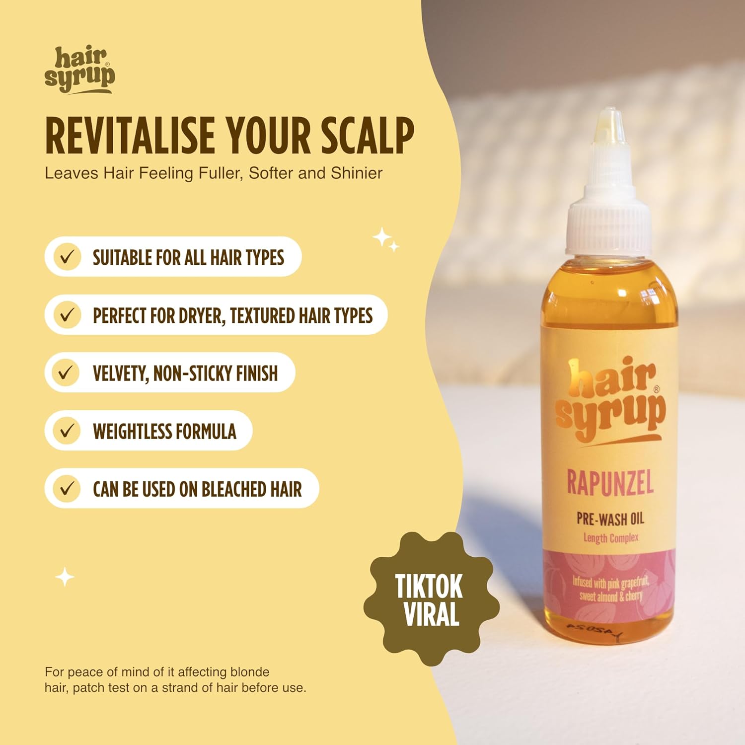 Hair Syrup | Rapunzel Pre-Wash Hair Oil | Infused With Pink Grapefruit, Sweet Almond & Cherry | Revitalise Your Scalp & Mind | Vegan | 100% Natural | 300Ml Pump Bottle Applicator