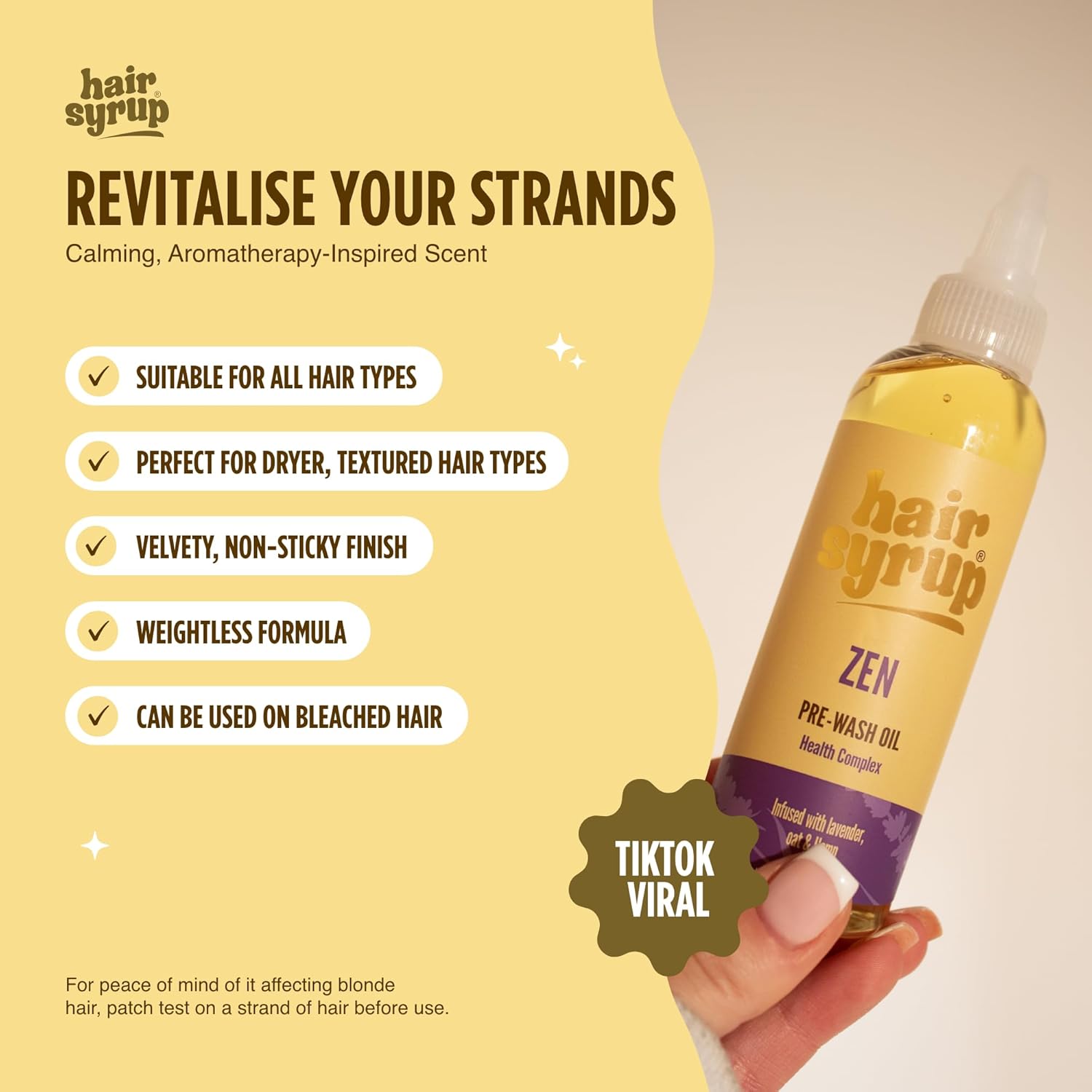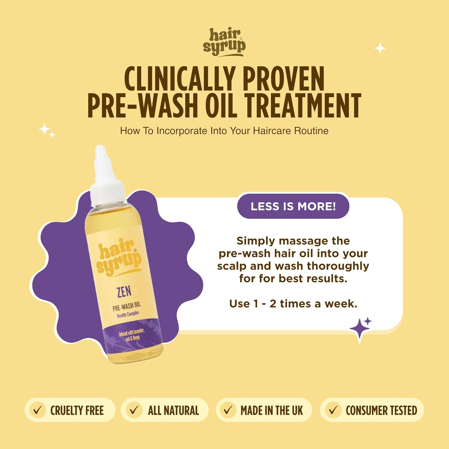 Hair Syrup | Zen Pre-Wash Hair Oil | De-Stress With Aromatherapy-Inspired Scent | Infused With Lavender, Oat & Hemp | 100% Natural | Vegan | 300Ml Pump Bottle Applicator