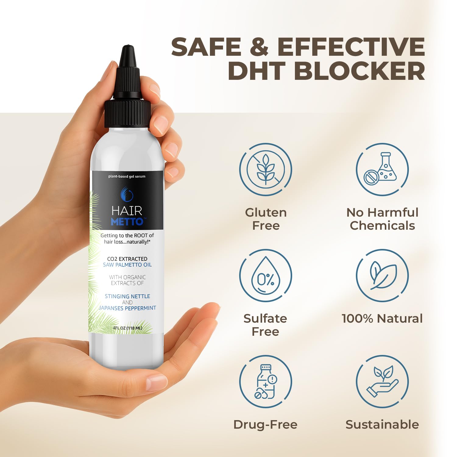 : HAIRMETTO hair growth serum is powered by saw palmetto oil, a potent natural DHT blocker that helps reduce hair fall, prevent thinning, and support healthier, thicker hair growth. Ideal for men and women experiencing early signs of hair loss, this serum nourishes the scalp, strengthens follicles, and promotes visible results with cons