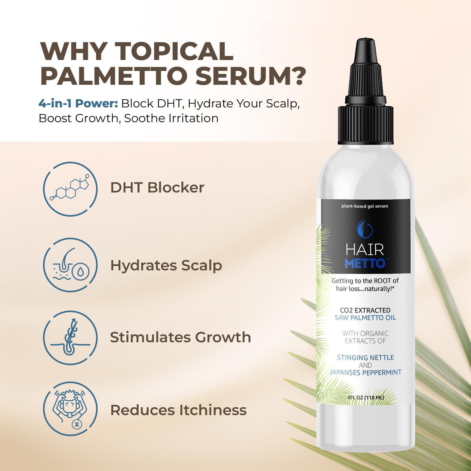 Hairmetto Saw Palmetto Extract Serum For Hair Loss, Hair Growth Serum With Stinging Nettle, Rosemary Oils And Peppermint Scent, Hair Serum For Men And Women - 4Oz (118Ml)