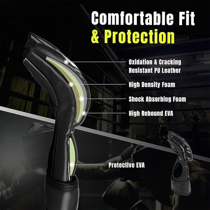 The open-palm, half-finger design ensures better flexibility, ventilation, and hand control during intense training sessions. Extra padding around the knuckles offers enhanced protection, while the adjustable wrist strap provides a secure and comfortable fit for both men and women.