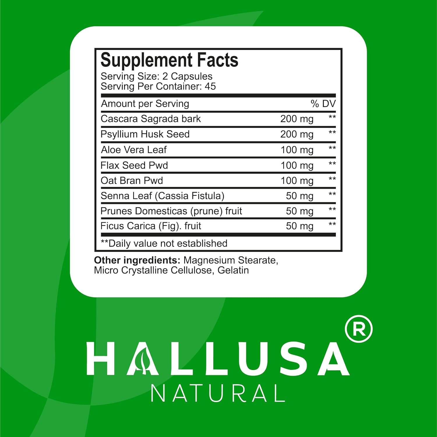 About this item Plant-Based Ingredients for Daily Comfort - Features a specialized blend of natural extracts like Cascara Sagrada bark, Psyllium husk, Aloe vera, and Flax seed, ideal for maintaining digestive harmony and internal balance. Colon Cleanse Detox Blend - Formulated with a combination of time-tested botanicals that encourage natural internal cleansing and a refreshed, lighter feeling. Gentle Gut Health Balance - Crafted to naturally harmonize your digestive flow with plant-based ingredients, creating a sense of daily well-being without harsh effects. 45-Day Supply for Lasting Consistency - Each bottle contains 60 capsules, offering a steady addition to your wellness routine with a convenient serving size designed for daily use. Premium Quality from Hallusa Natural - Proudly crafted in the USA with carefully selected non-GMO ingredients, gluten-free, and manufactured under strict quality standards to ensure a trusted product experience. See more product details, Plant-Based Ingredients for Daily Comfort - Features a specialized blend of natural extracts like Cascara Sagrada bark, Psyllium husk, Aloe vera, and Flax seed, ideal for maintaining digestive harmony and internal balance, Colon Cleanse Detox Blend - Formulated with a combination of time-tested botanicals that encourage natural internal cleansing and a refreshed, lighter feeling, Gentle Gut Health Balance - Crafted to naturally harmonize your digestive flow with plant-based ingredients, creating a sense of daily well-being without harsh effects, 45-Day Supply for Lasting Consistency - Each bottle contains 60 capsules, offering a steady addition to your wellness routine with a convenient serving size designed for daily use, Premium Quality from Hallusa Natural - Proudly crafted in the USA with carefully selected non-GMO ingredients, gluten-free, and manufactured under strict quality standards to ensure a trusted product experience