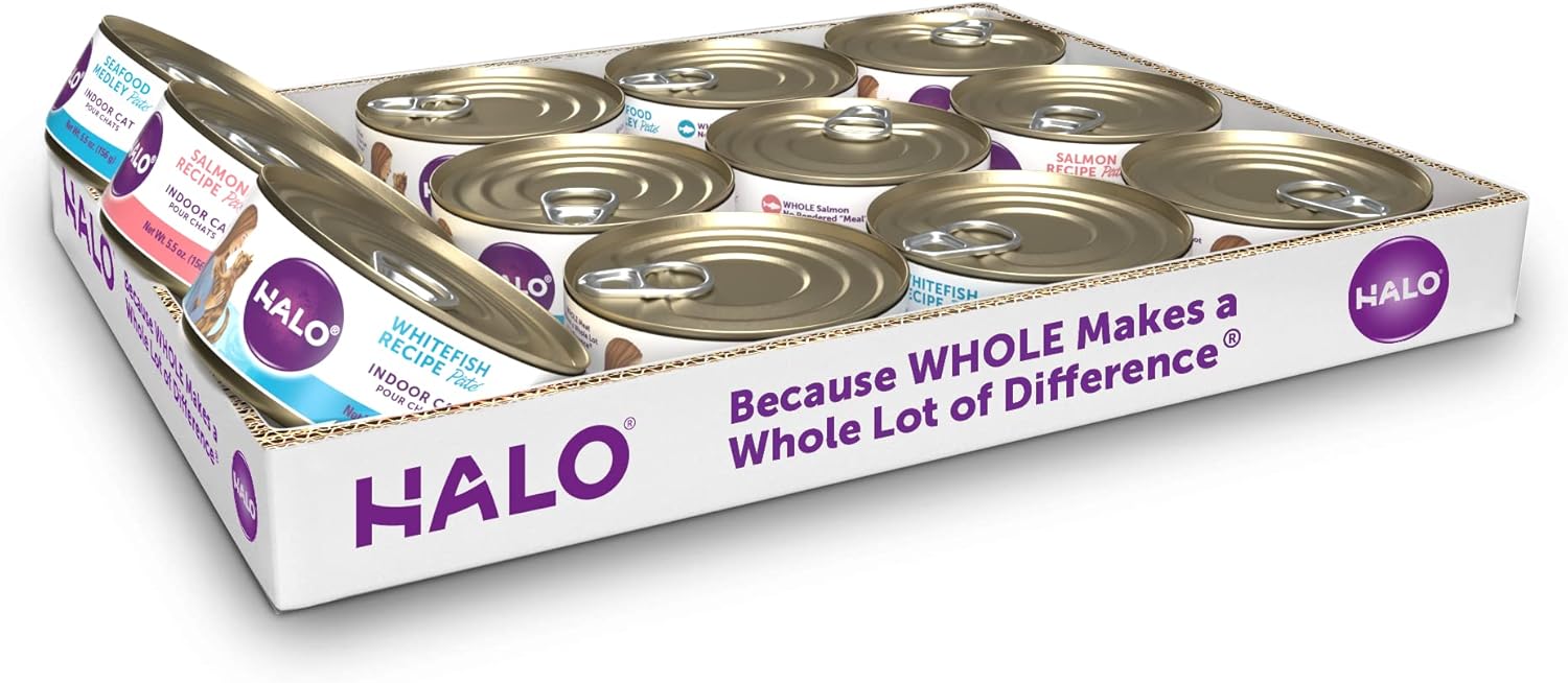 Halo Cat Seafood Pate Variety Pack: Grain Free Whitefish Pate, Salmon Pate, Seafood Medley Pate 5.5 Oz Can (Pack Of 12)
