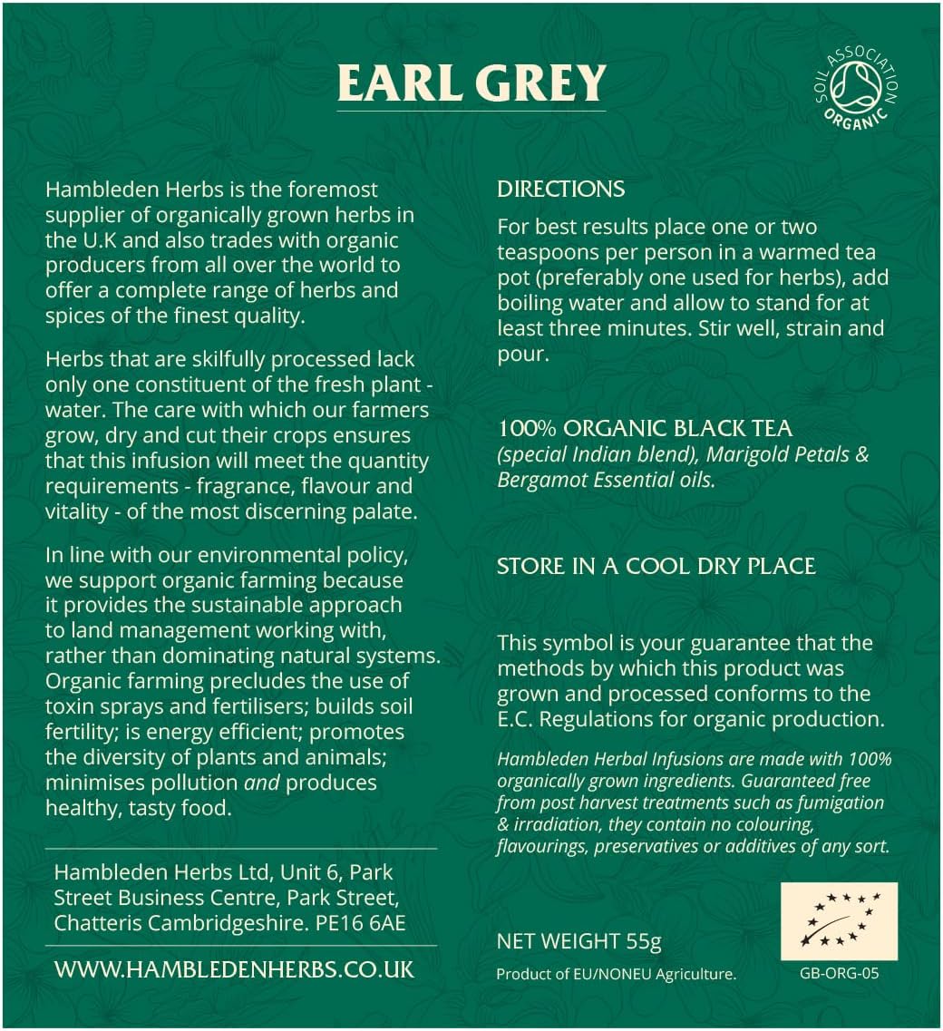 Hamblden Herbs Organic Earl Grey Loose Leaf Infusion 55G (6 X 55G Pouches)