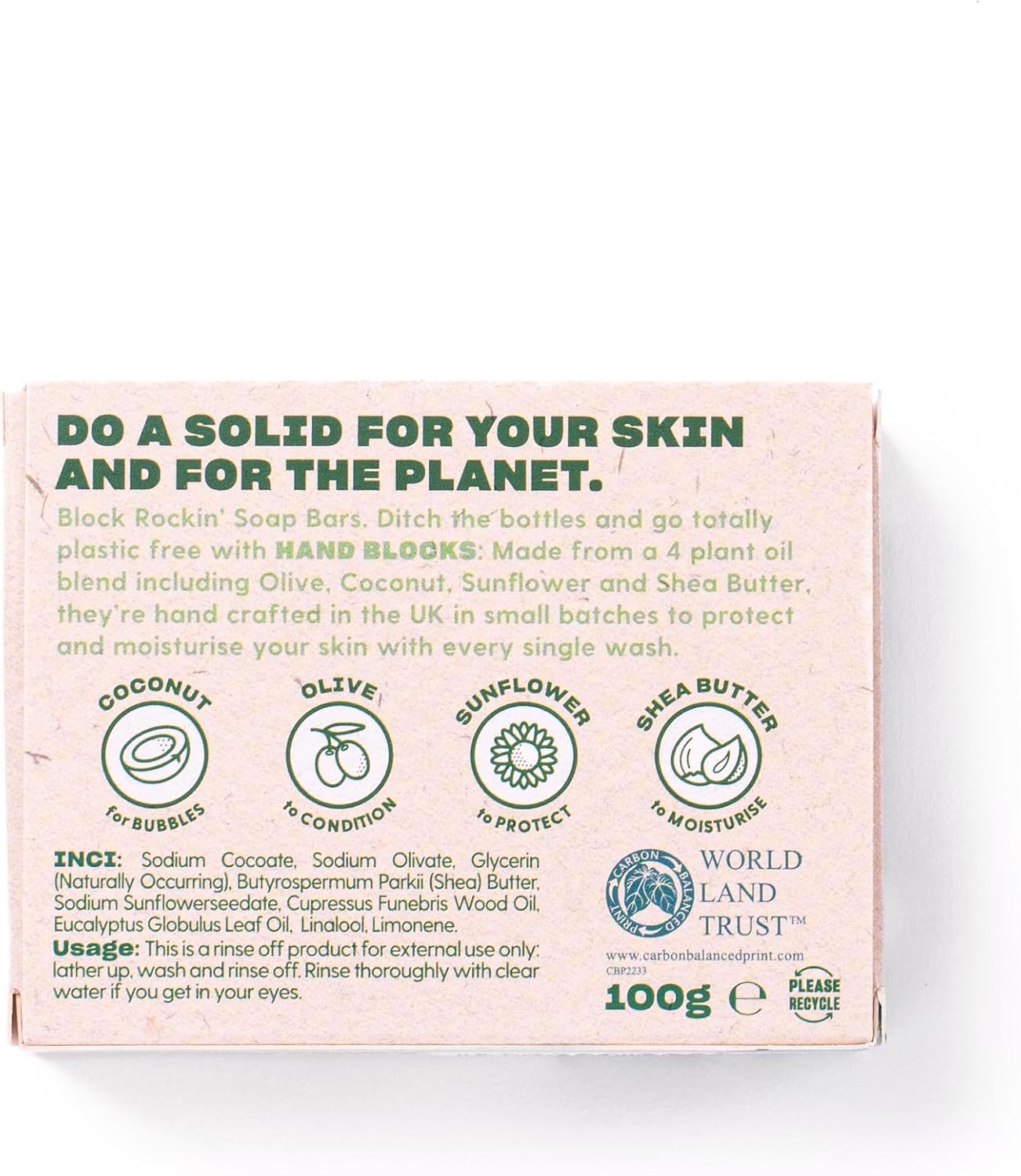 Hand Blocks: Cedarwood & Eucalyptus - Cold Processed Natural Soap Bars - Plastic, Palm, Sls, Sles & Paraben Free