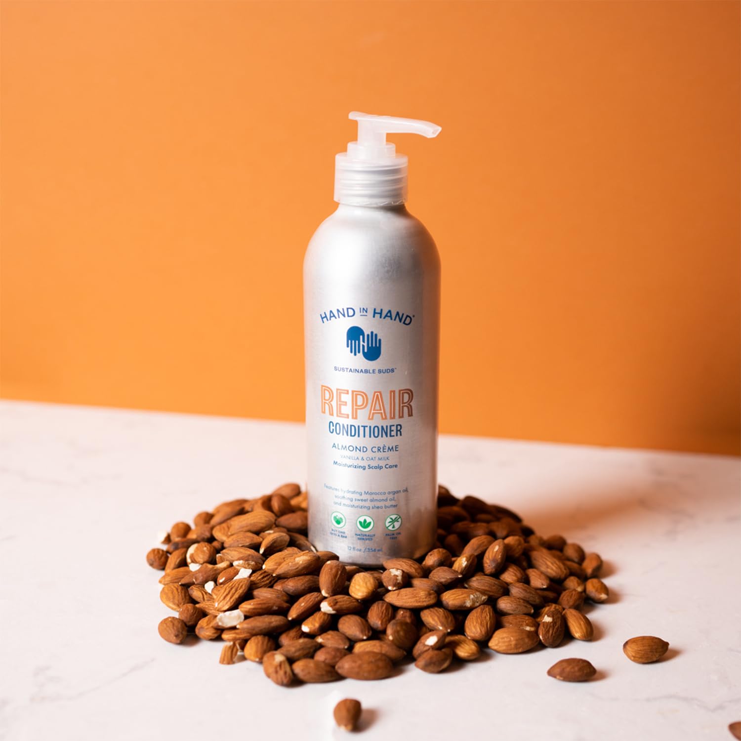 Hand In Hand Almond Creme Shampoo & Conditioner For All Hair Types, Vanilla & Oat Milk, Sulfate And Paraben Free, 12 Fl. Oz