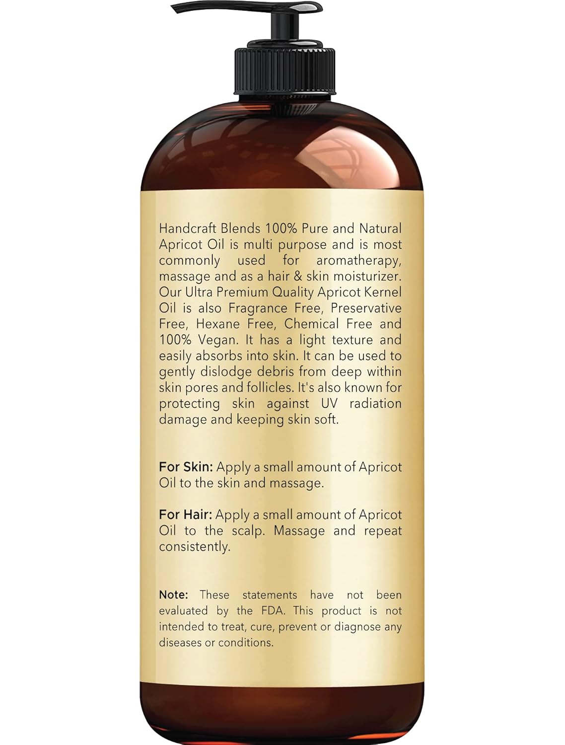 Handcraft Blends Apricot Kernel Oil - 16 Fl Oz - 100% Pure And Natural - Premium Grade Oil For Skin And Hair - Carrier Oil - Hair And Body Oil - Massage Oil - Cold-Pressed And Hexane-Free