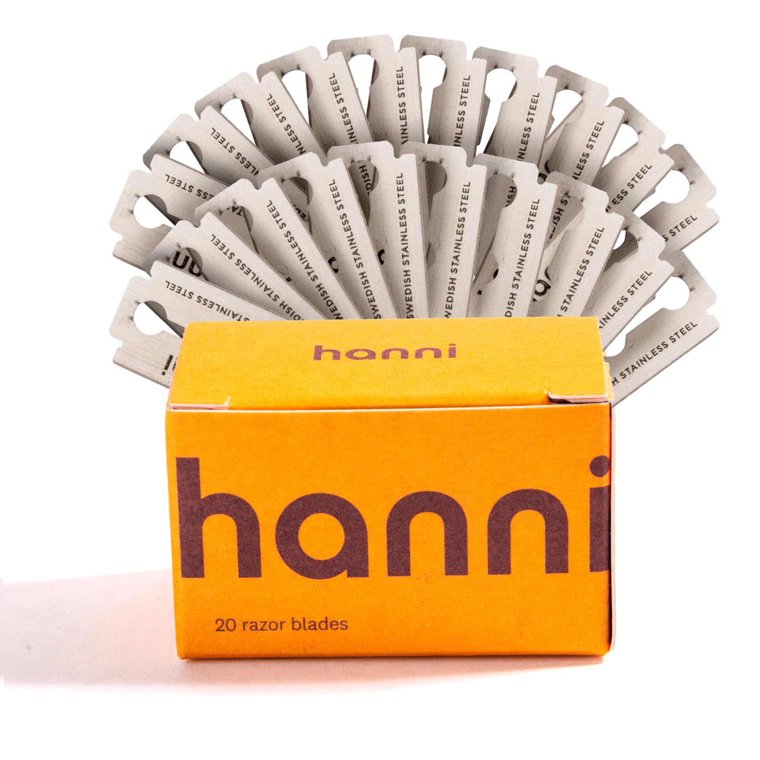 Hanni Safety Razor Blades, Double Edge, Single Blade Refills, Women Shaving For Sensitive Or Any Body Area, Stainless Steel Swedish Blade For Smooth Skin Shave (1 Pack, 20, Count)