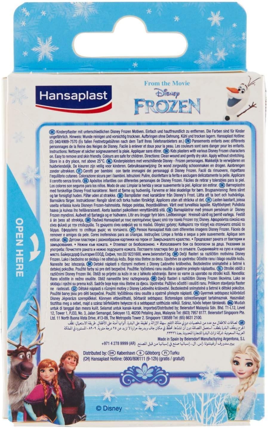 Product Description Description Hansaplast Bandaid, Motif: „Frozen “, 20 Piece, 2 Packs - 2 x 20 pièces - Protects the Wound vor Dirt and Bacteria - 20 different FROZEN plasters to distract and delight your little Elsa, Anna or Olaf. - Painless to Remove and Skin Friendly - Delivery: 1 Hansaplast Pack of 2 Frozen Bandaid, 2 x 20 Piece - Die Secure Adhesion Allows the Bandaid not Slip Directions Clean the wound, apply the plaster, and remove it carefully when needed,Protects the Wound vor Dirt and Bacteria,20 different FROZEN plasters to distract and delight your little Elsa, Anna or Olaf,Painless to Remove and Skin Friendly,Delivery: 1 Hansaplast Pack of 2 Frozen Bandaid, 2 x 20 Piece,Die Secure Adhesion Allows the Bandaid not Slip