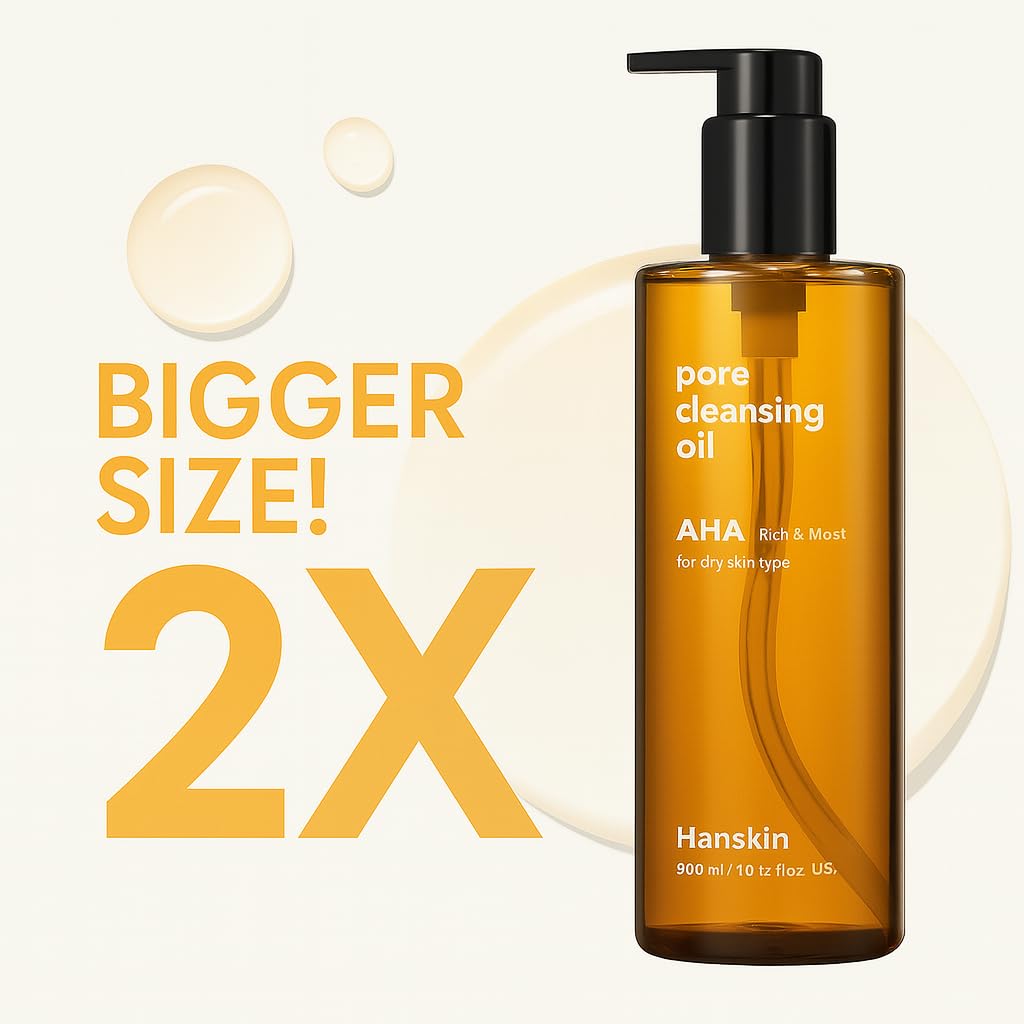 About this item FOR DRY TO NORMAL SKIN TYPES [AHA]: Hanskin's Cleansing Oil line has three unique acids that is suitable for every skin type! Our AHA Cleansing Oil is gel type oil texture for dry, combination, and normal skin! Alpha Hydroxy Acid (AHA) is perfect for aging skin, wrinkles, and dryness. AHA exfoliates the top layer to reveal smoother, hydrated, and visibly firmer skin. Waterproof Makeup Remover & Non- eye irritation: Effortlessly dissolve even the most stubborn waterproof makeup without causing eye irritation. Hanskinās gentle AHA Pore Cleansing Oil purifies pores while being kind to your eyes, leaving your skin clean, refreshed, and balanced. DEEP PORE CLEANSING OIL: Remove your blackheads and make up at once! DLightly exfoliate and banish blackheads with naturally derived plant oils that dissolve dirt and sebum. This cleanser also lifts away makeup, leaving your skin feeling oh-so-purified and smooth after each use. NOURISHING INGREDIENTS: This cleansing oil is packed with tea tree oil to fight breakouts, plus jojoba, olive, grape seed oils, and aloe vera extract to keep your skin hydrated all day long.Our cleansing oils are free of Artificial Fragrances, Parabens, Sulphates, Artificial Colors, Animal Products! They are also Cruelty-Free & Animal Testing Free ! HOW TO DOUBLE CLEANSE: Start with dry hands and a dry face. Pump 1-2 times into your palm and massage gently onto your face in circular motions, including the delicate eye area. Add water to emulsify the oil and massage to help dissolve surface impurities and makeup. You can gently massage around your nose or any problem areas to remove your blackheads and impurities. Rinse off thoroughly with warm water. See more product details,FOR DRY TO NORMAL SKIN TYPES [AHA]: Hanskin's Cleansing Oil line has three unique acids that is suitable for every skin type! Our AHA Cleansing Oil is gel type oil texture for dry, combination, and normal skin! Alpha Hydroxy Acid (AHA) is perfect for aging skin, wrinkles, and dryness. AHA exfoliates the top layer to reveal smoother, hydrated, and visibly firmer skin,Waterproof Makeup Remover & Non- eye irritation: Effortlessly dissolve even the most stubborn waterproof makeup without causing eye irritation. Hanskinās gentle AHA Pore Cleansing Oil purifies pores while being kind to your eyes, leaving your skin clean, refreshed, and balanced,DEEP PORE CLEANSING OIL: Remove your blackheads and make up at once! DLightly exfoliate and banish blackheads with naturally derived plant oils that dissolve dirt and sebum. This cleanser also lifts away makeup, leaving your skin feeling oh-so-purified and smooth after each use,NOURISHING INGREDIENTS: This cleansing oil is packed with tea tree oil to fight breakouts, plus jojoba, olive, grape seed oils, and aloe vera extract to keep your skin hydrated all day long.Our cleansing oils are free of Artificial Fragrances, Parabens, Sulphates, Artificial Colors, Animal Products! They are also Cruelty-Free & Animal Testing Free !,HOW TO DOUBLE CLEANSE: Start with dry hands and a dry face. Pump 1-2 times into your palm and massage gently onto your face in circular motions, including the delicate eye area. Add water to emulsify the oil and massage to help dissolve surface impurities and makeup. You can gently massage around your nose or any problem areas to remove your blackheads and impurities. Rinse off thoroughly with warm water