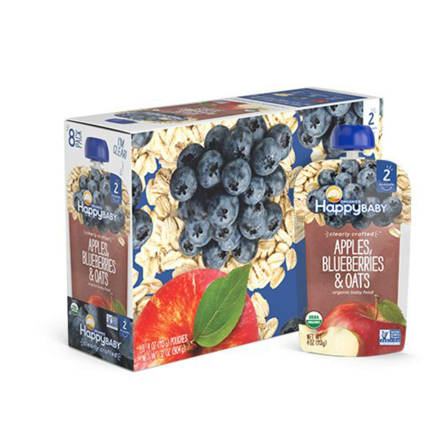 Happy Baby Organics Clearly Crafted Stage 2 Baby Food, Apples, Blueberries And Oats, 4 Ounce (8 Count)