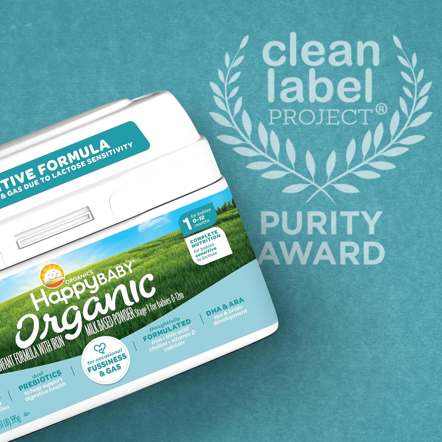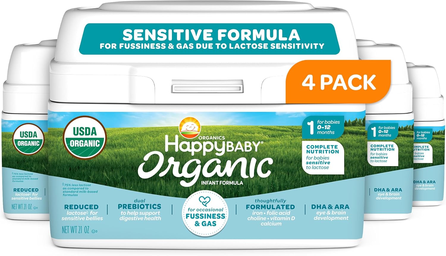 Made For Babies With Sensitive Tummies, Our Sensitive Organic Infant Formula Has 75% Less Lactose Than Standard Formulas And Is Crafted With Quality Ingredients, Including Essential Nutrients And Dual Prebiotics. Happy Baby Organic Sensitive Infant Formula Can Alleviate Occasional Fussiness & Gas While Providing Complete Nutrition For Little Ones With Lactose Sensitivity. No Corn Syrup Solids No Taurine No L-Methionine No L-Carnitine No Gluten No Carrageenan No Maltodextrin Here'S To A Happy Start!