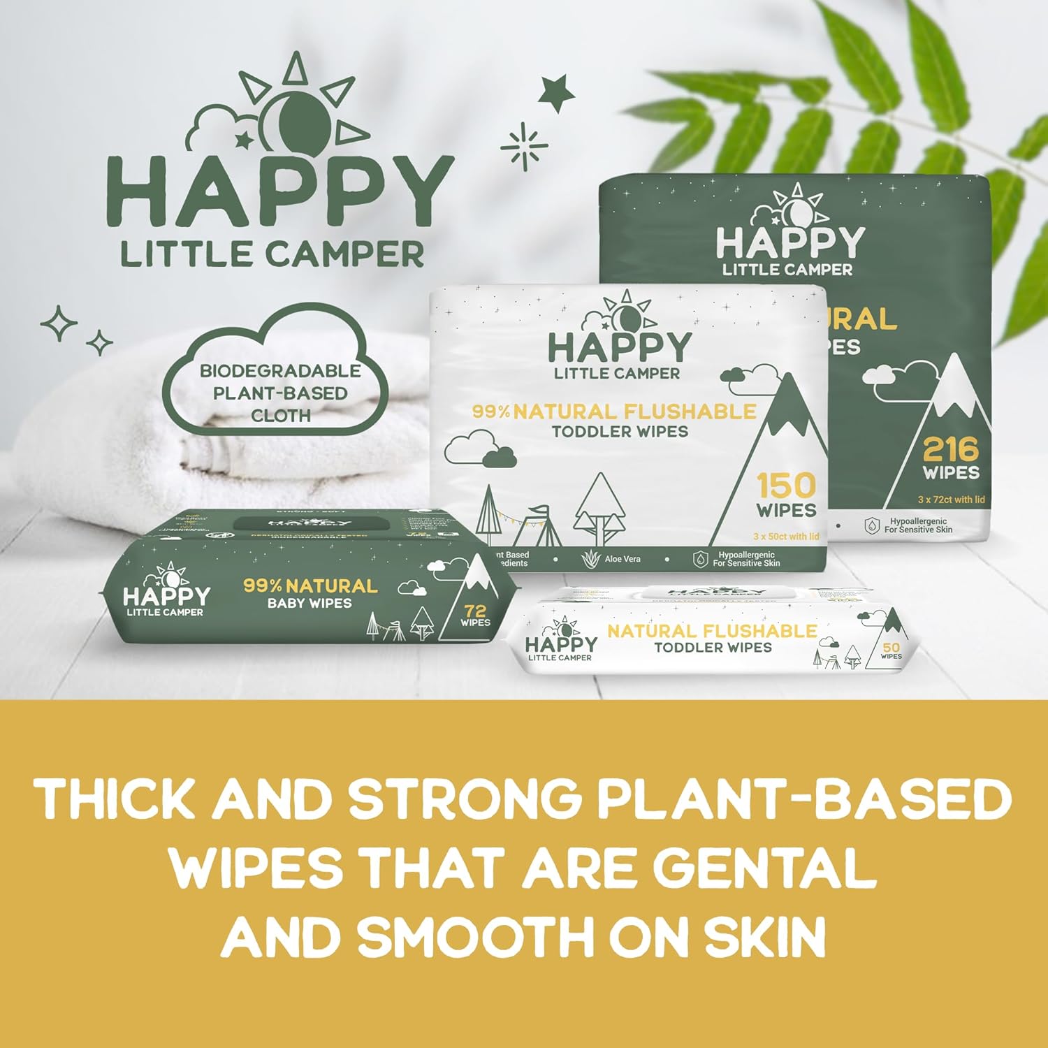 Happy Little Camper Natural Baby Wipes Unscented - Hypoallergenic & Chlorine-Free Wet Wipes With Aloe Vera, Chamomile And Pomegranate Extract - Gentle On Sensitive Skin - 216 Count