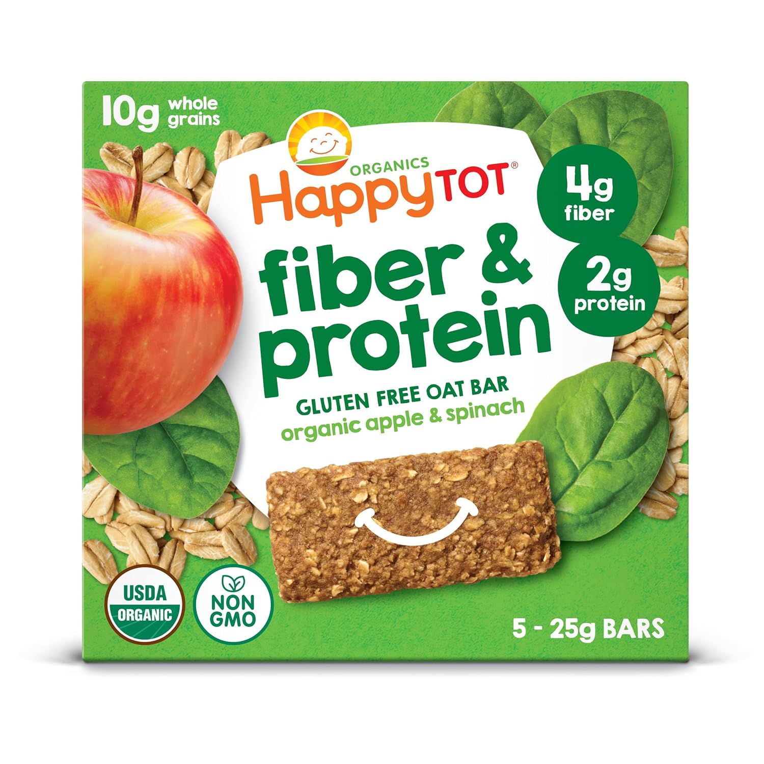 Happy Tot Fiber & Protein Bars Have Important Nutrients For Your Tot'S Growing Body. Individually Wrapped And Great For Snacking On The Go, These Bars Are Made With Organic Gluten Free Whole Grain Oats, Which Help Deliver 10 Grams Of Whole Grains. We'Ve Included 2 Grams Of Protein And 3 Grams Of Fiber, Using Trusted Organic Ingredients For Your Growing Tot!