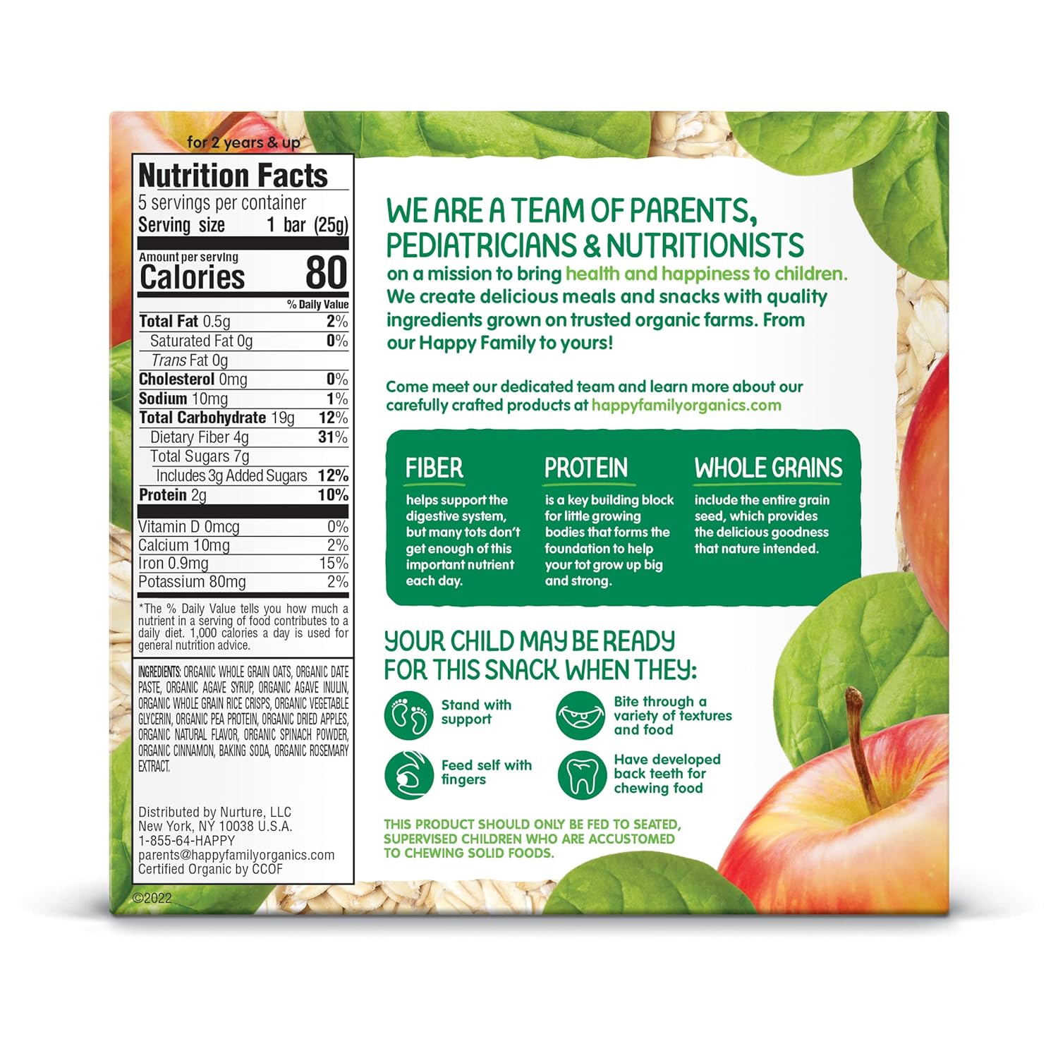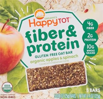 FIBER & PROTEIN BARS: Made to help support your toddler's growing body, this delicious chewy oat bar is made with organic organic fruit, veggies & whole grain oats. These bars deliver 4 grams of fiber, which helps keep your tot’s digestion regular, and 2 grams of protein, which helps keep their little bellies full. Organic toddler food that’s easy to grab on-the-go, for a tasty snack that’s a great size for little fingers10HAPPY TOT BARS: Got a picky eater Happy Tot Fiber gluten-free soft-baked oat bars are a tasty snack with the nutrients they need! Individually-wrapped, they're easy to grab and go or pack as a preschool snack. For 2 years & up10HAPPY TOT: Our trusted, organic toddler pouches, snacks and mealtime solutions offer nutrition your little one needs - like fiber, protein, veggies and more in a variety of flavors for every picky eater10OUR HAPPY PROMISE: All products are certified USDA organic, gluten free and made with non-GMO ingredients grown without the use of toxic persistent pesticides and in packaging made without BPA, BPS, or phthalates10HAPPY FAMILY ORGANICS: We are on a mission to change the trajectory of children's health through nutrition. We provide age and stage appropriate premium organic food products for babies & tots!