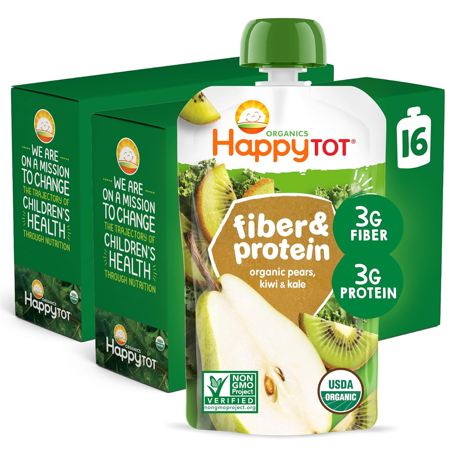 Happy Tot Fiber & Protein Pouches Help Little Ones Get Key Nutrients From Organic Vegetables And Fruits, With Fiber From Fruit, Veggies & Chia And Added Protein. Made With Wholesome Ingredients Selected To Support This Age And Stage Of Tots’ Development, Protein Is An Important Building Block For Your Tot'S Muscles, While Fiber Helps Promote Digestive Health. Happy Tot Fiber & Protein Pouches Make It Easier To Provide Your Picky Eater With The Nutrition They Need!