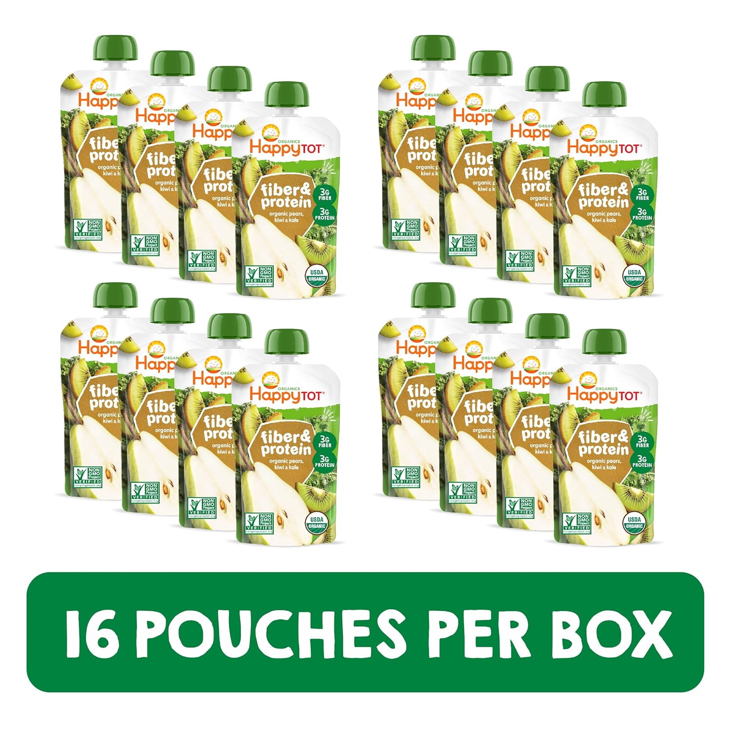 Happy Tot Organics Stage 4 Fiber & Protein, Pears, Kiwi & Kale, 4 Ounce (Pack Of 16)