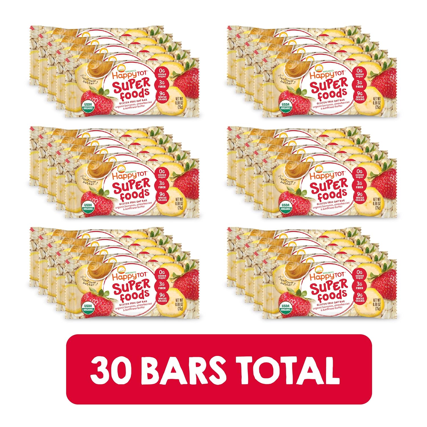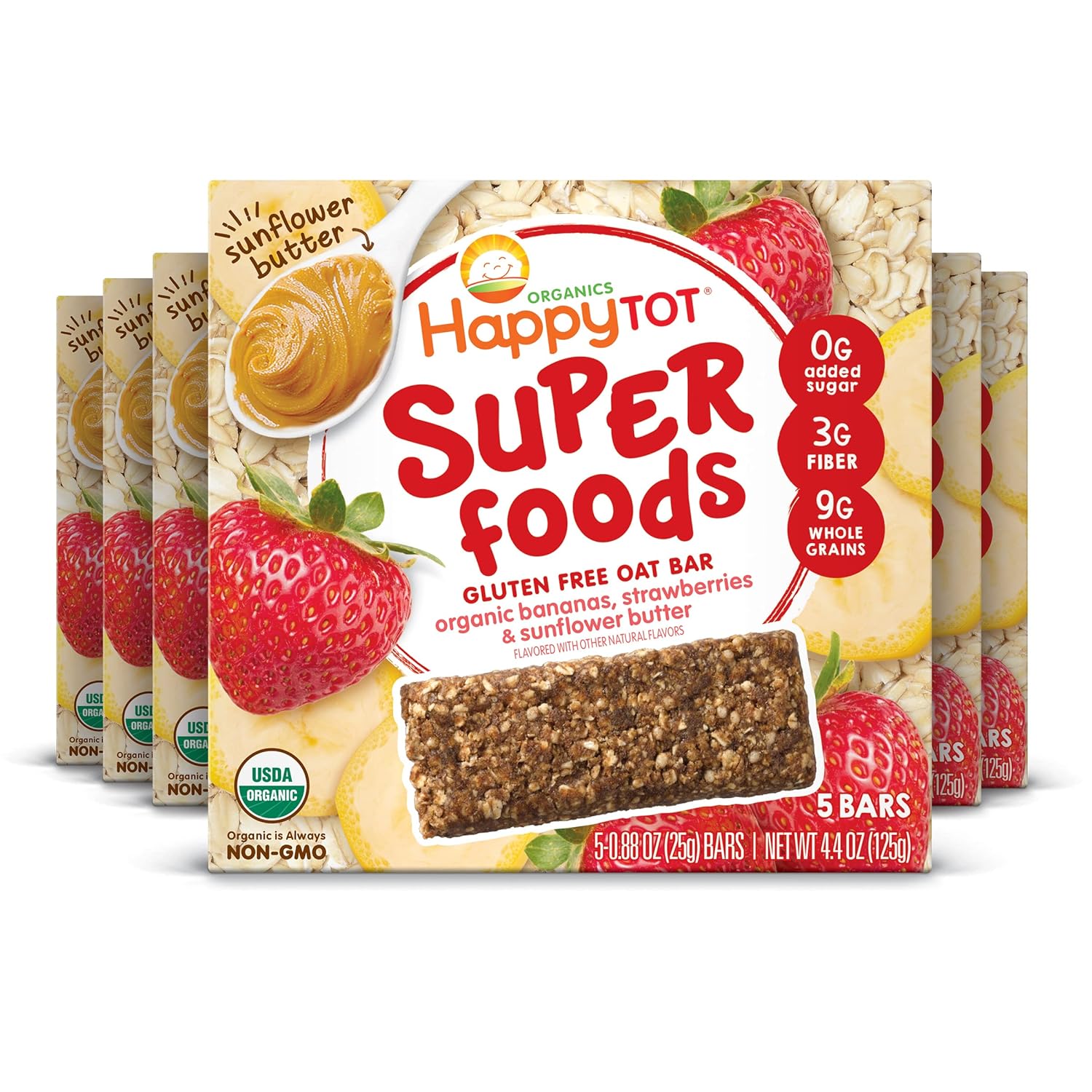 Happy Tot Organics Super Foods Oat Bars, Bananas, Strawberries & Sunflower Butter, 5 Count (Pack Of 6)