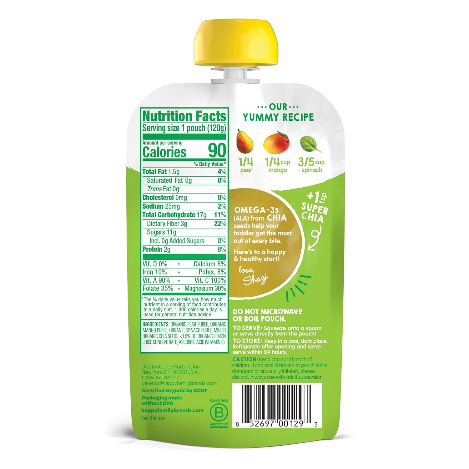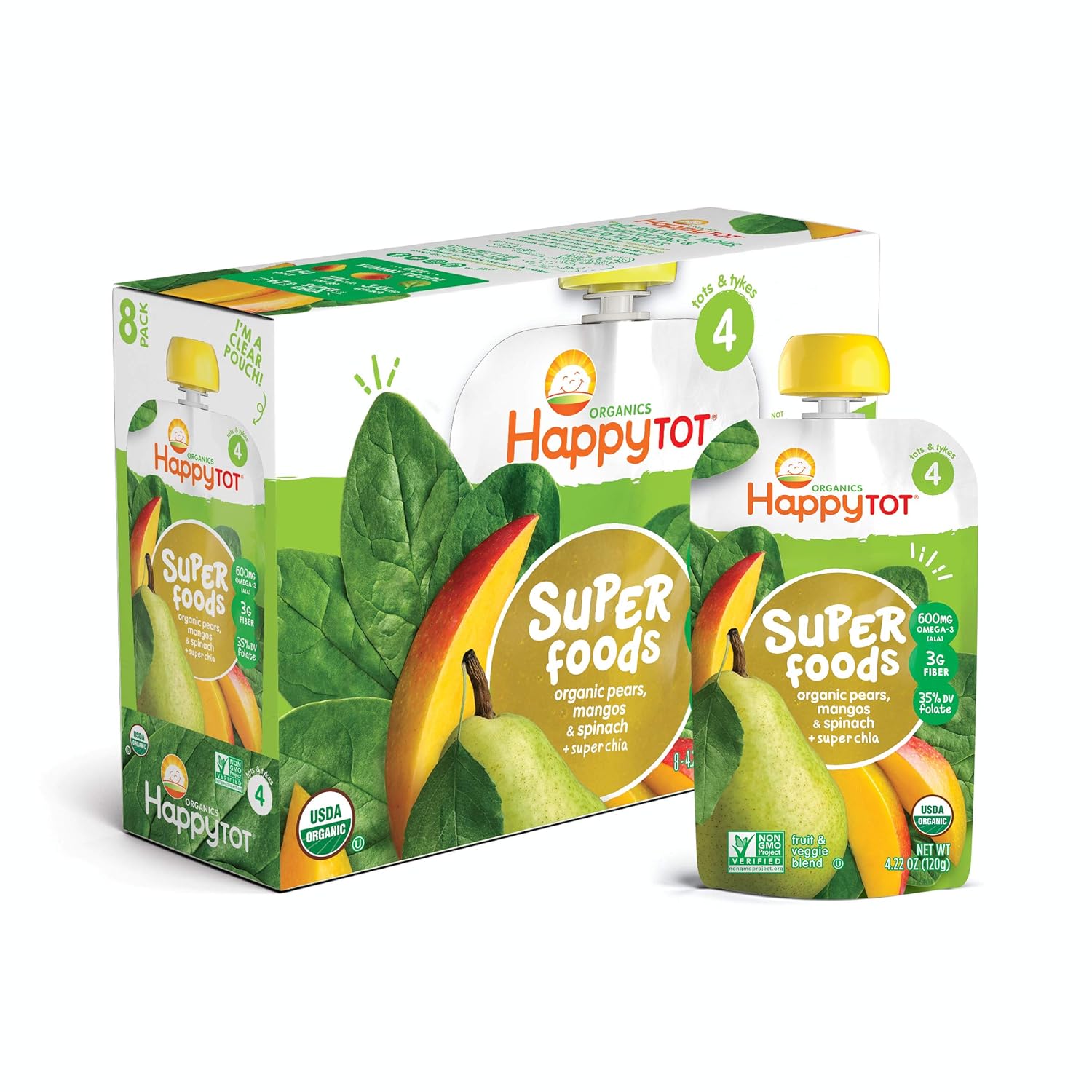 Happy Tot Organics Super Foods Stage 4, Pears, Mangos And Spinach + Super Chia, 4.22 Ounce Pouch (Pack Of 8)