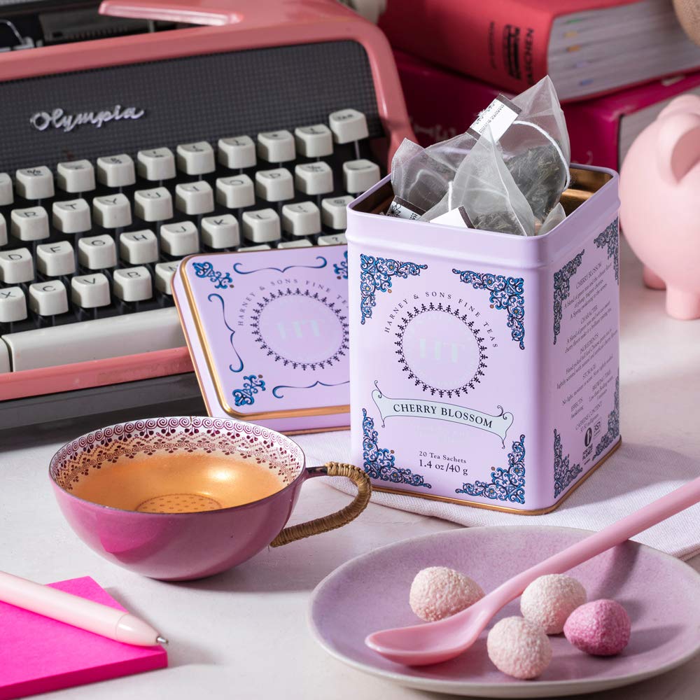 Harney & Sons Caffeinated Blossom Green Tea Tin Sachets Pink 31629, Cherry, 20 Count (Pack Of 1)