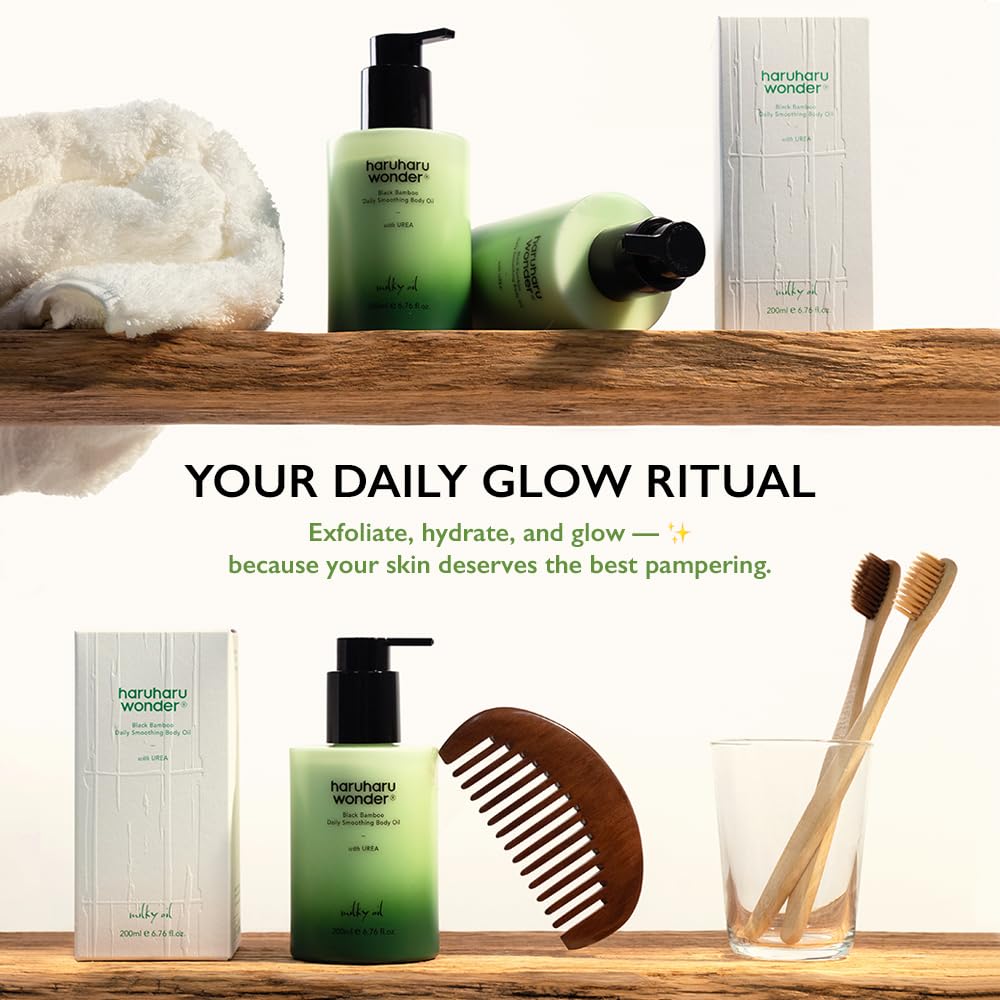 Haruharu Wonder Black Bamboo Daily Smoothing Body Oil, 6.76 Fl Oz, Fast Absorption, Lightweight, Non-Greasy, Deeply Hydrating, Locks In Moisture, Softens & Nourishes Skin, With Almond & Argan Oil