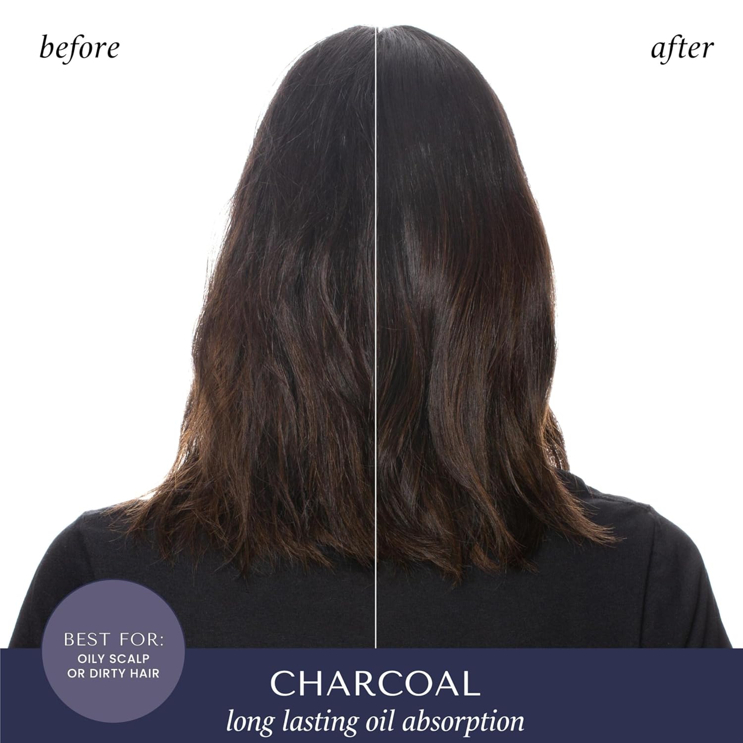 About this item Charcoal & Rice Starch | Infused with charcoal to gently exfoliate and detoxify, while rice starch absorbs oil and freshens hair, leaving it ultra-clean and purified without any gritty residue Absorbs Oil & Extends Freshness | Quickly soaks up oil, sweat, and odor, leaving hair fresh and clean for longer, extending the time between washes and reducing buildup Purifies & Detoxifies | Charcoal powder works to remove impurities and buildup from the scalp and hair, while purifying the scalp for a healthier, refreshed feeling How to Use | Shake well before use. Hold can 6-10 inches from roots, spray, and wait 30 seconds. Brush or massage with fingertips, then style as desired Free Of | No sulfates, parabens, phthalates, silicones, gluten, artificial colors, aluminum starch, or talc; vegan, cruelty-free, and color-safe formula See more product details,Charcoal & Rice Starch | Infused with charcoal to gently exfoliate and detoxify, while rice starch absorbs oil and freshens hair, leaving it ultra-clean and purified without any gritty residue,Absorbs Oil & Extends Freshness | Quickly soaks up oil, sweat, and odor, leaving hair fresh and clean for longer, extending the time between washes and reducing buildup,Purifies & Detoxifies | Charcoal powder works to remove impurities and buildup from the scalp and hair, while purifying the scalp for a healthier, refreshed feeling,How to Use | Shake well before use. Hold can 6-10 inches from roots, spray, and wait 30 seconds. Brush or massage with fingertips, then style as desired,Free Of | No sulfates, parabens, phthalates, silicones, gluten, artificial colors, aluminum starch, or talc; vegan, cruelty-free, and color-safe formula