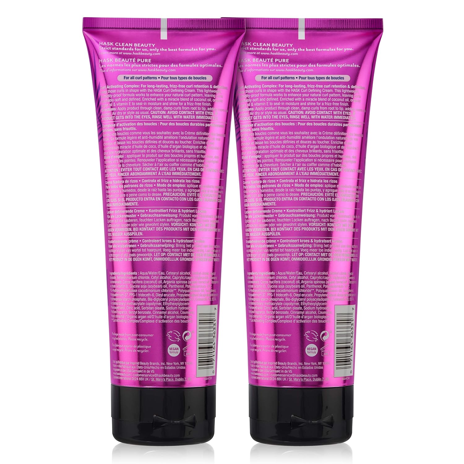 Hask Hair Cream - Curl Care Defining Cream 2 Piece Bundle, Vegan, Cruelty-Free, Color Safe, Free From Gluten, Sulfates, And Parabens