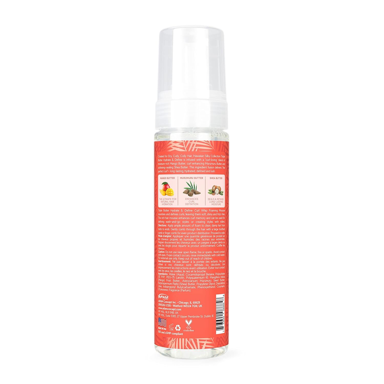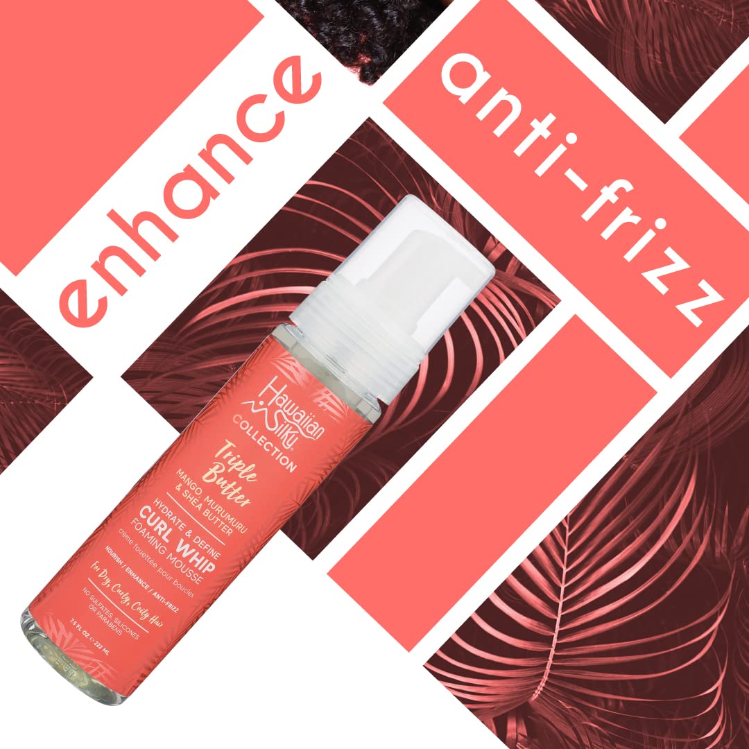 Hawaiian Silky Triple Butter Curl Whip Foaming Mousse, 7.5 fl oz with Mango, Murumuru & Shea Butter's for Nourish, Enhance & Anti-Frizz Styling | No Sulfate, Silicones or Parabens