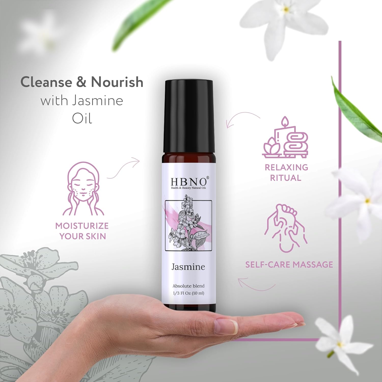 Hbno Jasmine Grandiflorum Oil Roll-On - 1/3 Oz (10 Ml) Travel Size - Jasmine And Mct - Perfect For Traveling, Aromatherapy, Massage, Perfumes, Moisturizer