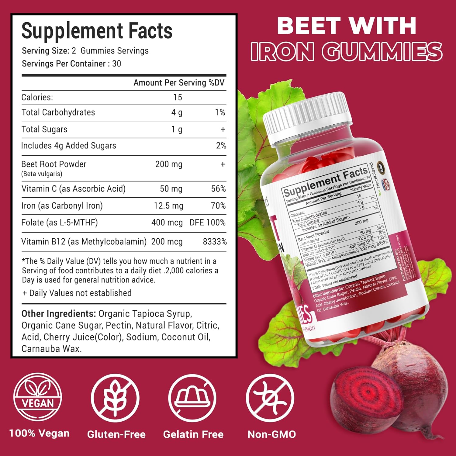 Healblend Beet Root Gummies 200Mg - Nitric Oxide Booster Beets With Iron For Heart Health, Circulation & Healthy Blood Pressure Support, Natural Flavored - 60 Gummy (1)