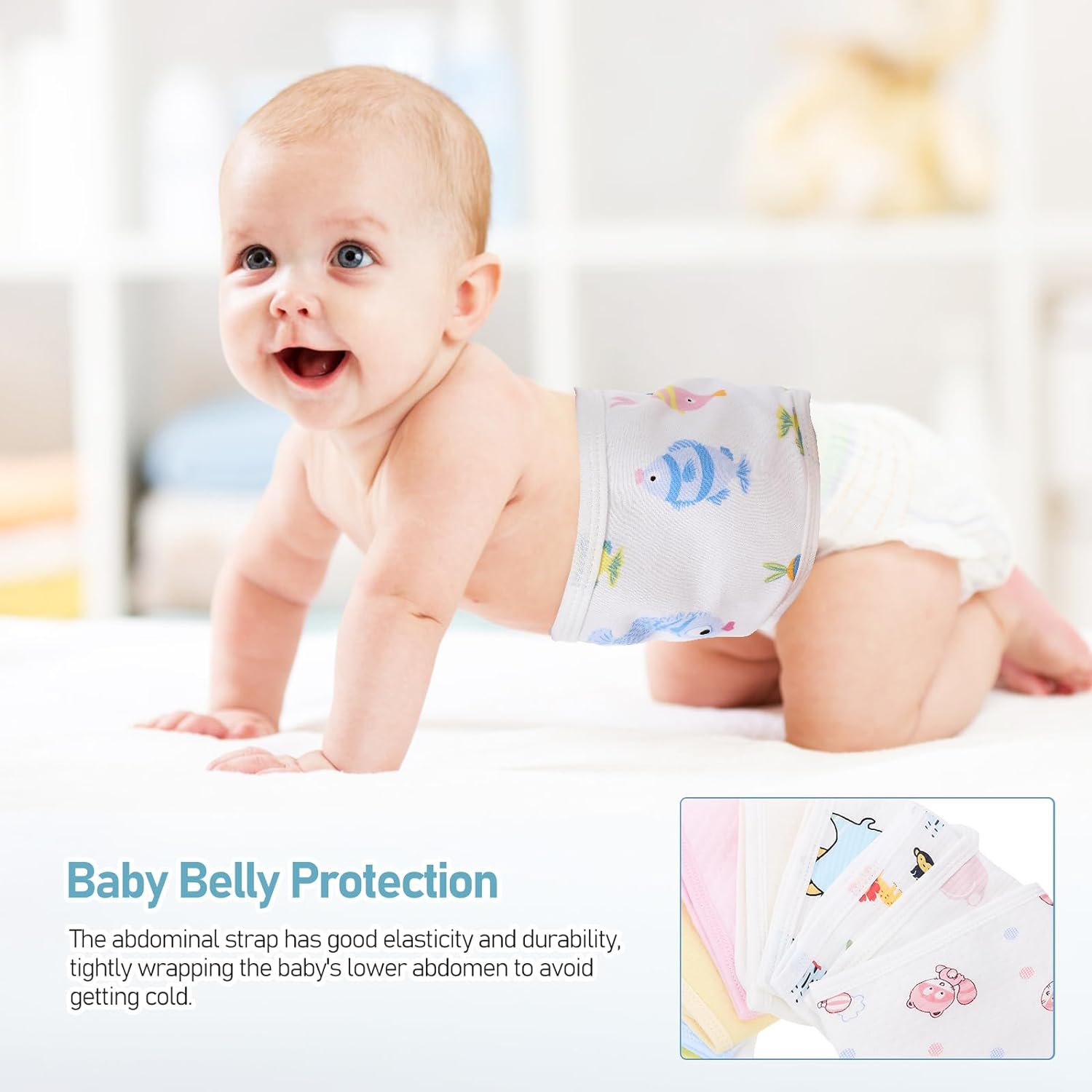 Safe and Soft MaterialCrafted from highquality cotton material, this newborn belly wrap is safe and soft, ensuring that it wont cause any irritation or discomfort to your babys delicate skin10Adjustable Belly StrapThe belly strap features fastener tape, which allows you to adjust the length of the belly circumference to ensure a comfortable fit for yourbaby10Cute Cartoon DesignThe umbilical cord area features a cute cartoon printing design that is sure to make yourbaby fall in love with it10Abdomen ProtectionThis newborn belly band can be used as abdomen protection to keep yourbaby warm and cozy, protecting them from the cold10Perfect GiftThis belly band makes an excellent present for yourbaby or a friend or family member who has just given birth. It is a thoughtful and practical gift that will be appreciated by any new parent